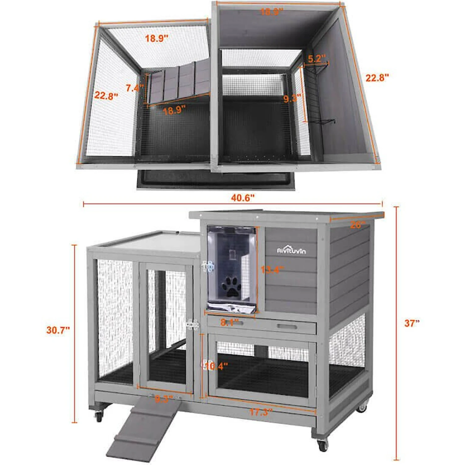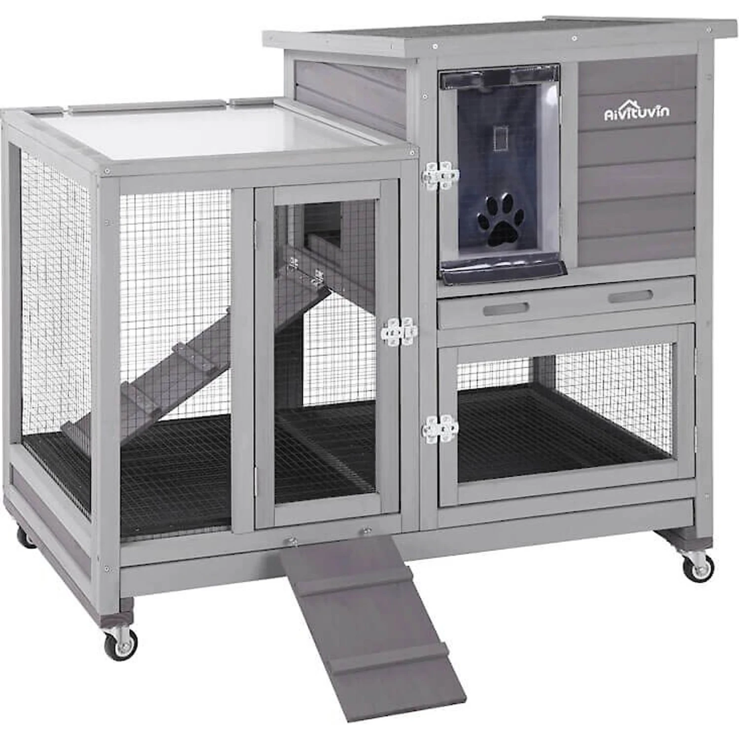 Aivituvin 36.4-in Indoor & Outdoor Wheeled Rabbit Hutch