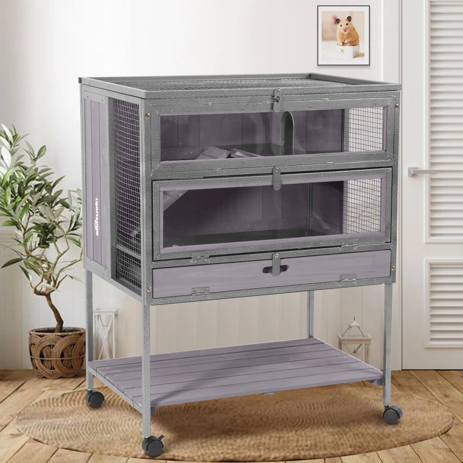 Aivituvin AIR25-1 Anti-Chew Iron Frame Wooden Hamster Cage, Gray