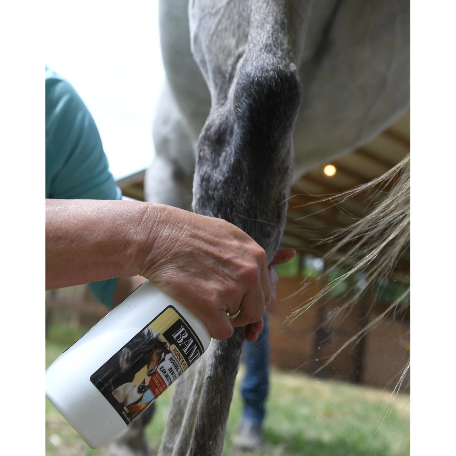 - Color-free solution won’t stain your hands, your horse, or your barn and is great for using before shows or riding