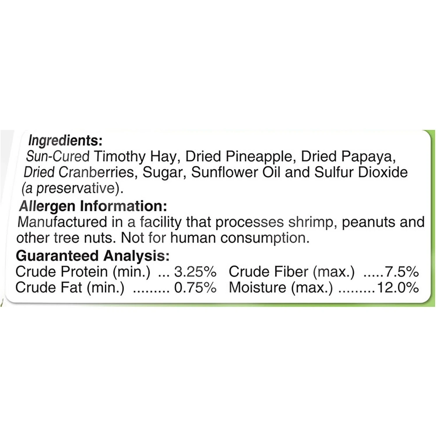 - Features timothy hay with real fruits and berries like papaya, pineapple and cranberries.