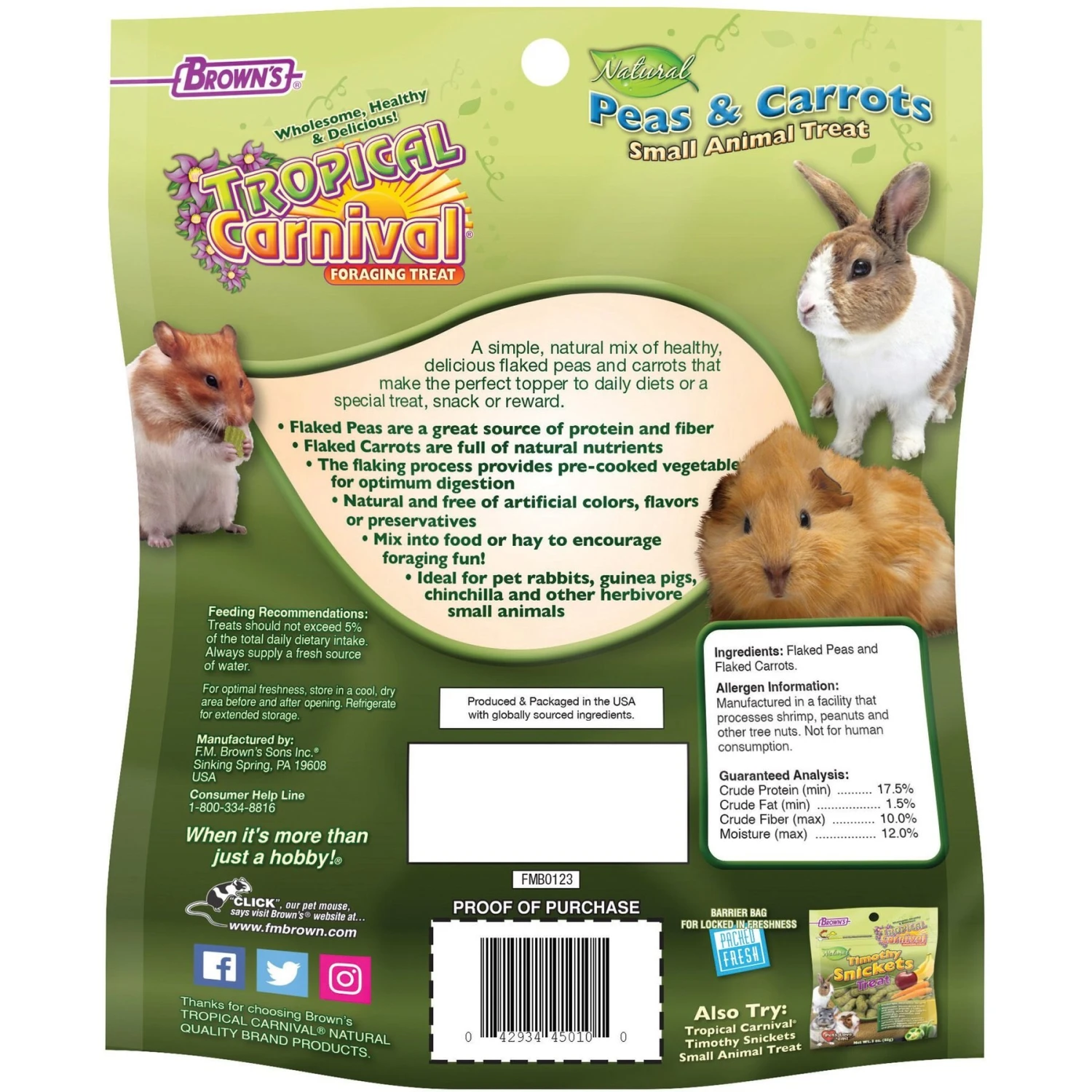 Brown’s Tropical Carnival Natural Peas & Carrots Small Pet Treats, 3.5-oz Bag
