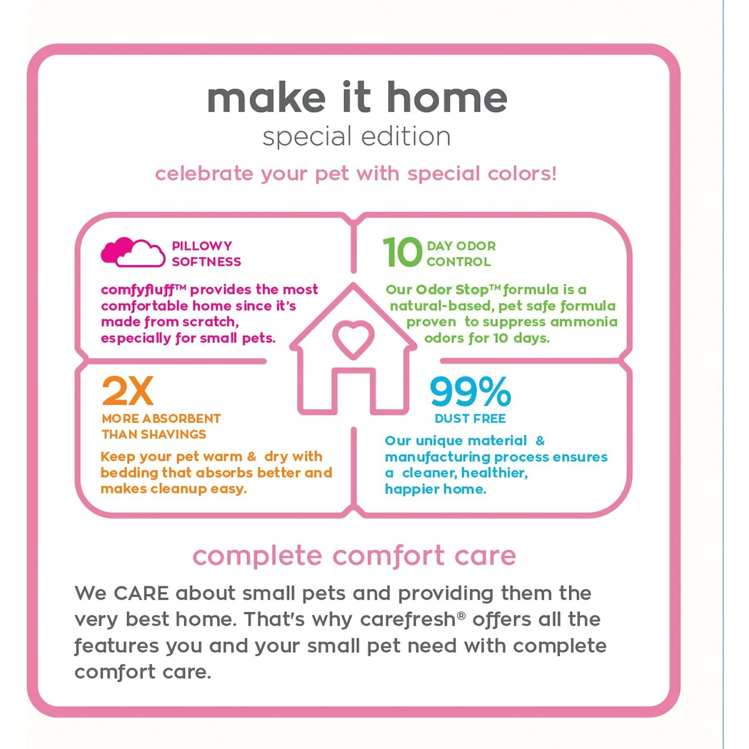 - Made from carefresh’s very own comfyfluff—a natural reclaimed paper fiber that’s biodegradable and compostable.