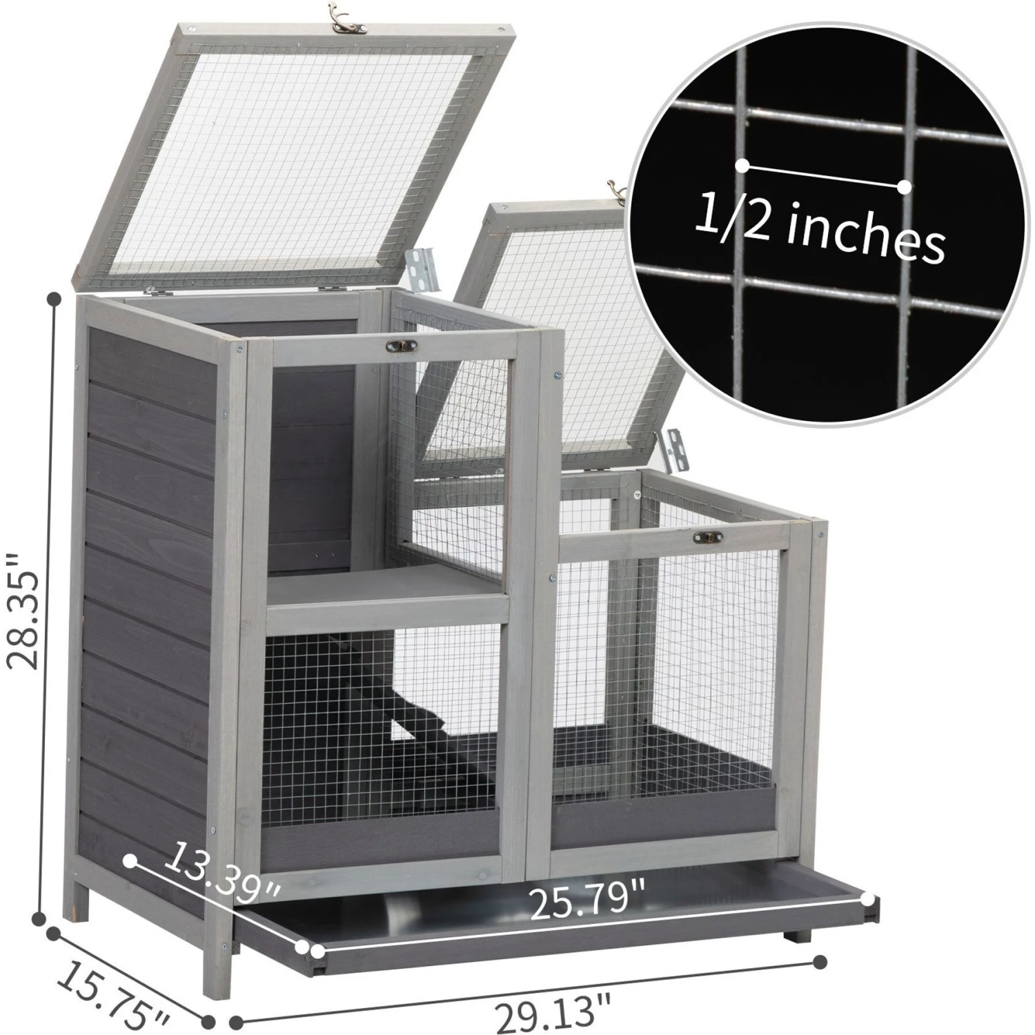 The Coziwow 2-Tier Wooden Small Pet Cage gives your hamsters plenty of space to play and snooze. The first floor has lots of room to crawl around, then they can climb up the ramp to the second floor which is darker and paw-fect for naps. Wire mesh provides plenty of ventilation and great views—plus, you can open the roof to easily put your hamsters inside or remove them. There’s a metal plate inside the tray that helps to prevent leaks and makes for easy cleaning. This spacious cage is large enough to let multiple hammies live together.