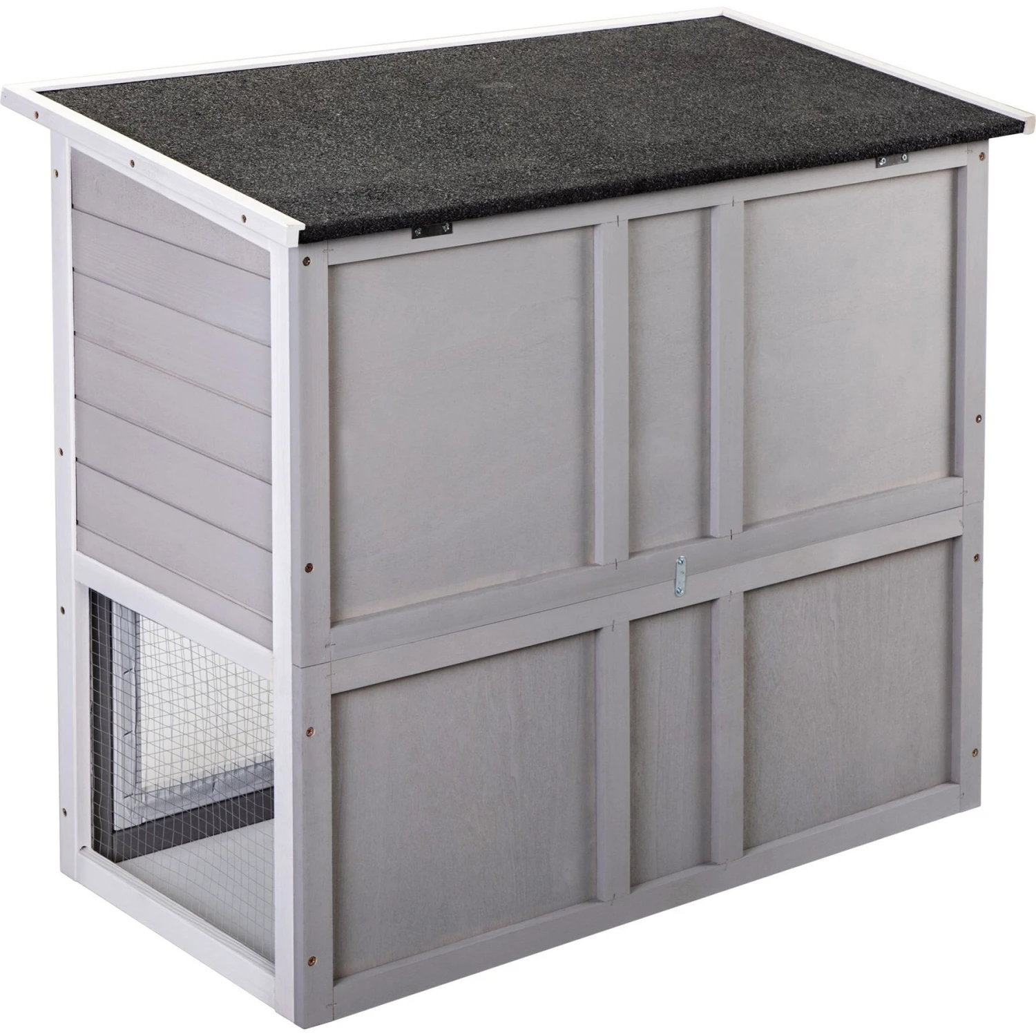 - Hinged asphalt roof for easy cleaning, access, and weather protection.