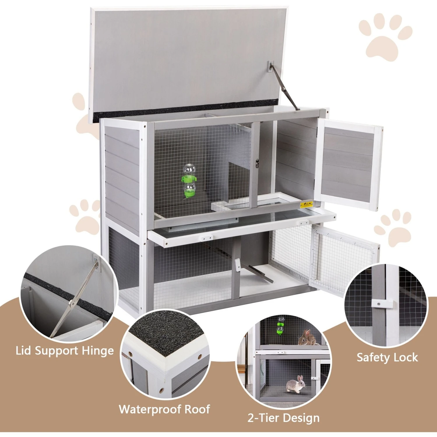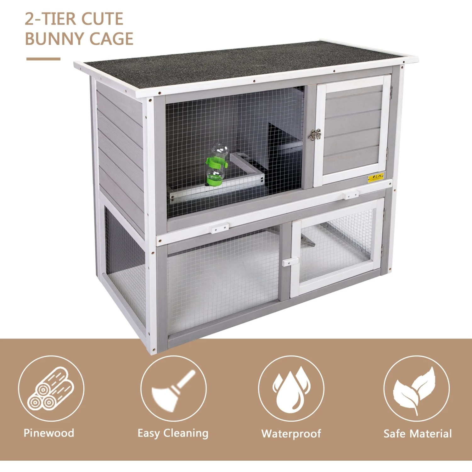 Coziwow By Jaxpety 2-Tier Wood Rabbit Hutch Cage With Weatherproof Roof