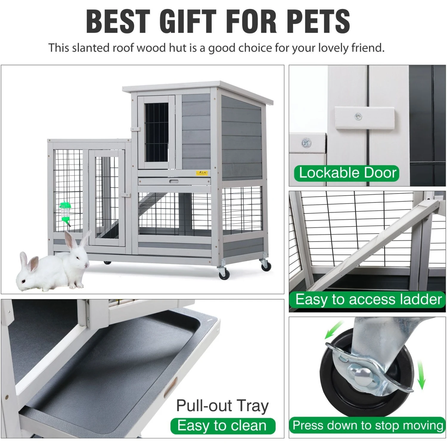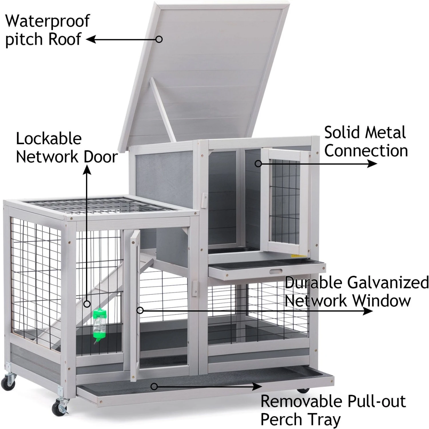 - For outdoor use, the slanted roof keeps rain from entering the enclosure and getting your furry friend wet
