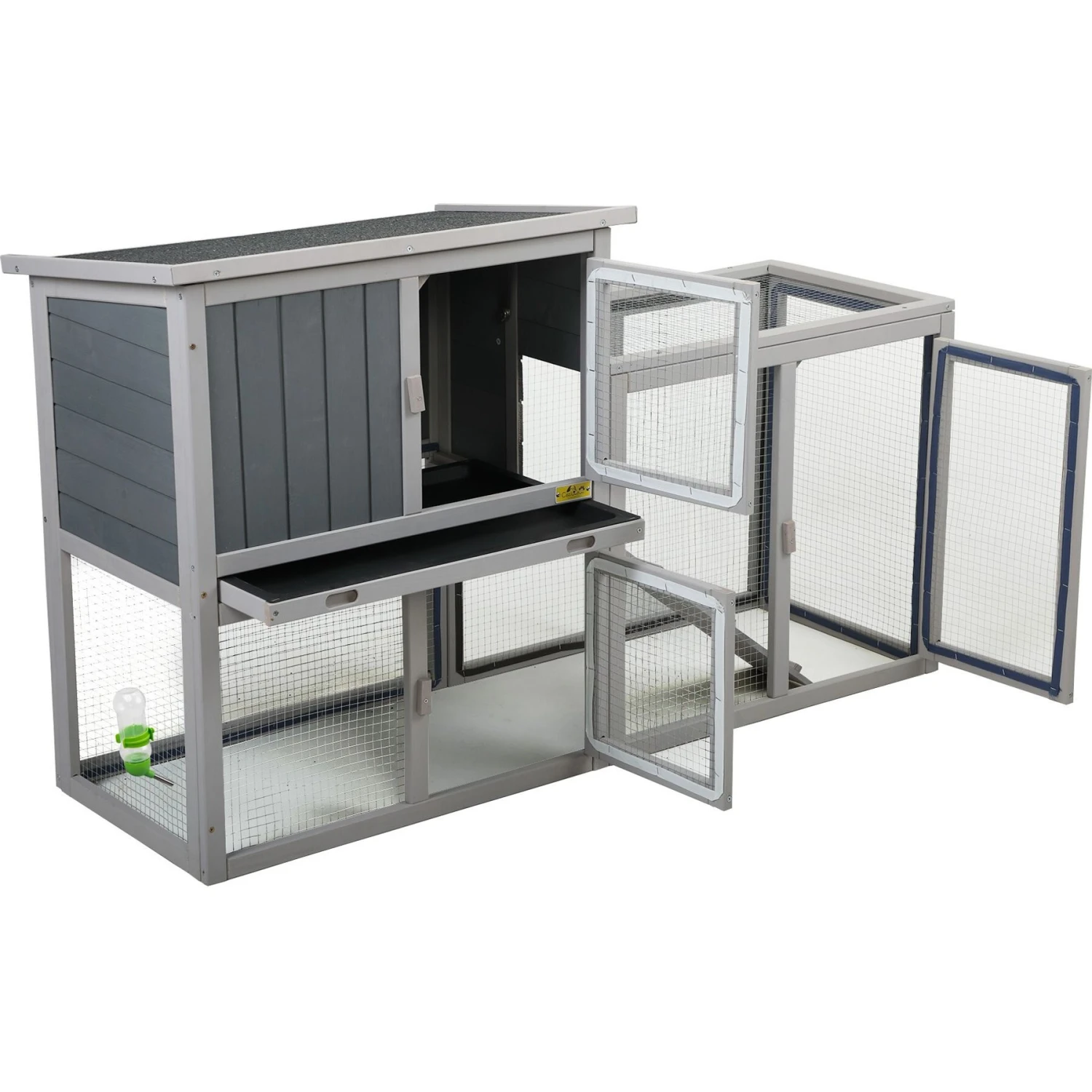 - For outdoor use, the slanted felt roof keeps rain from entering the enclosure and getting your furry friend wet