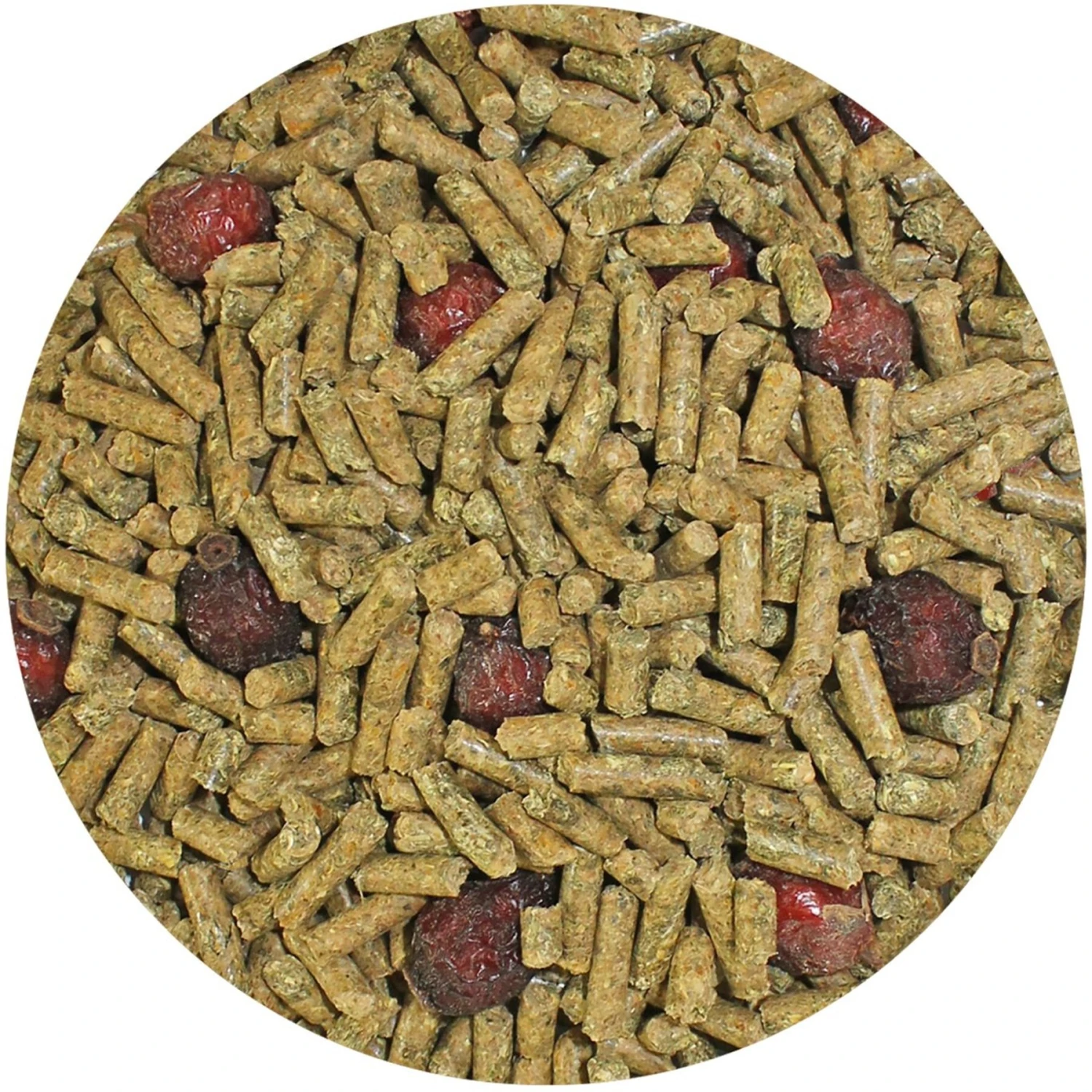 - Includes tasty timothy and alfalfa hay pellets plus dried rose hips.