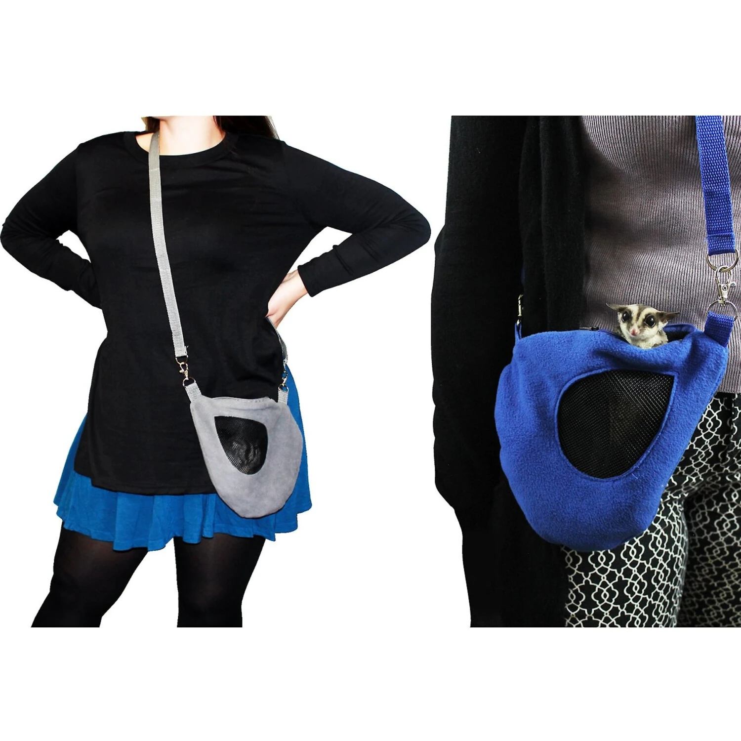 - Teardrop-shaped travel pouch for your sugar glider or other small pet.