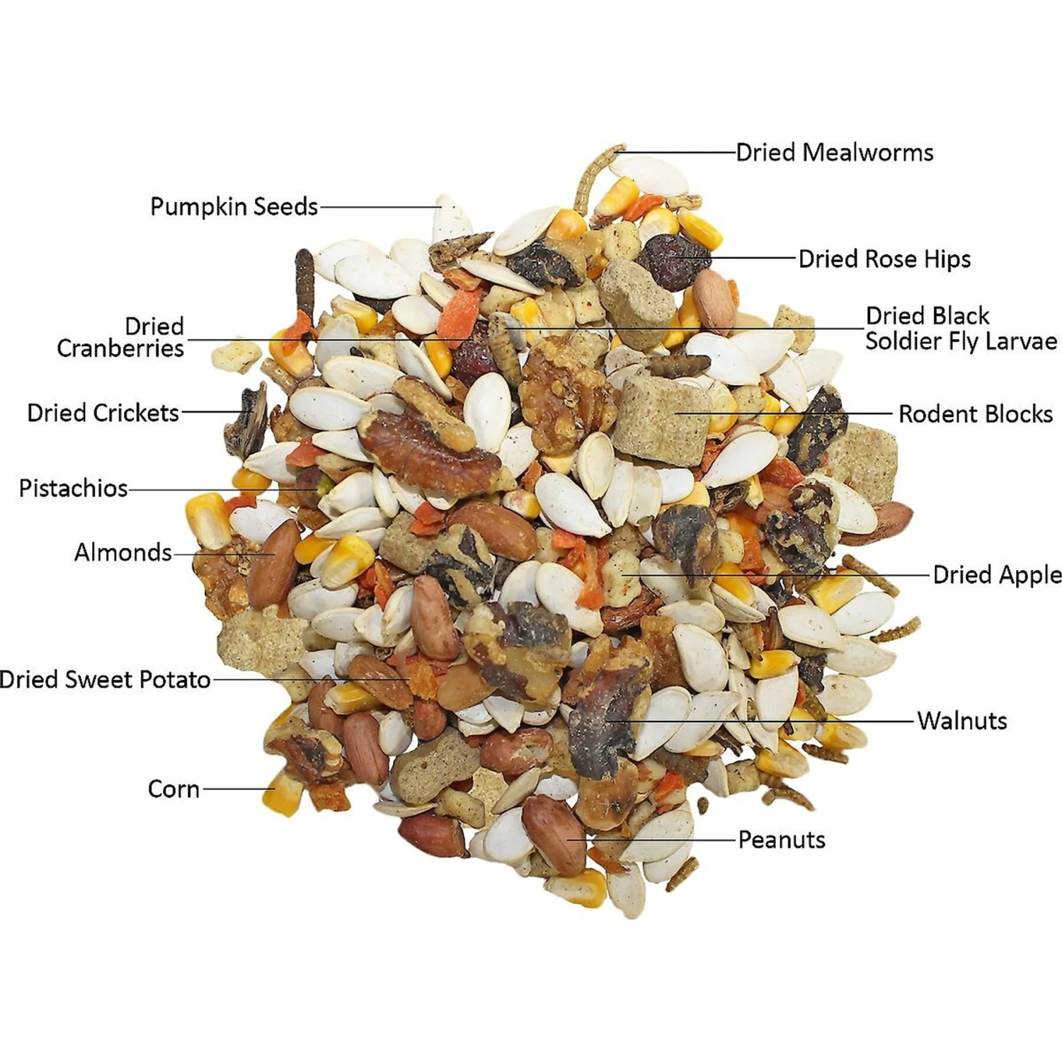 - Includes a variety of nuts like walnuts, pecans, almonds and peanuts to encourage your squirrel’s natural foraging instincts.