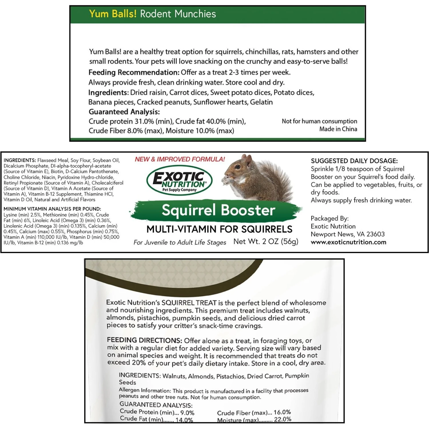 - Sprinkle Squirrel Booster on your buddy’s meals to add even more nutrition to his diet.