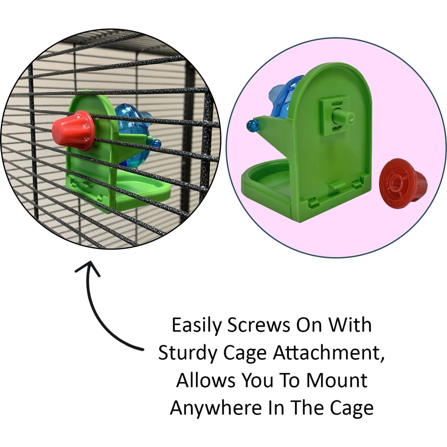 - Attaches to the side of any wire cage with supplied screw-on mount.