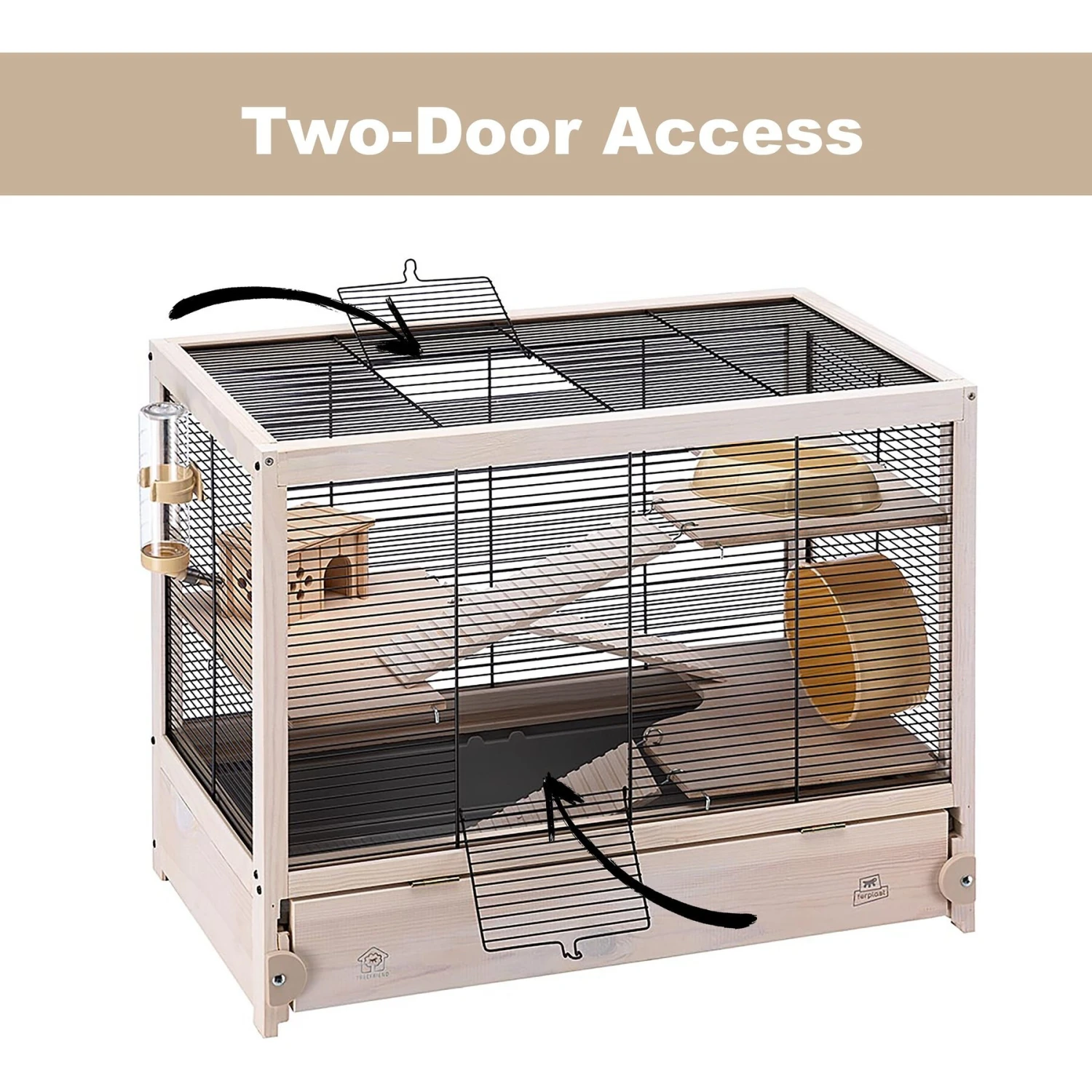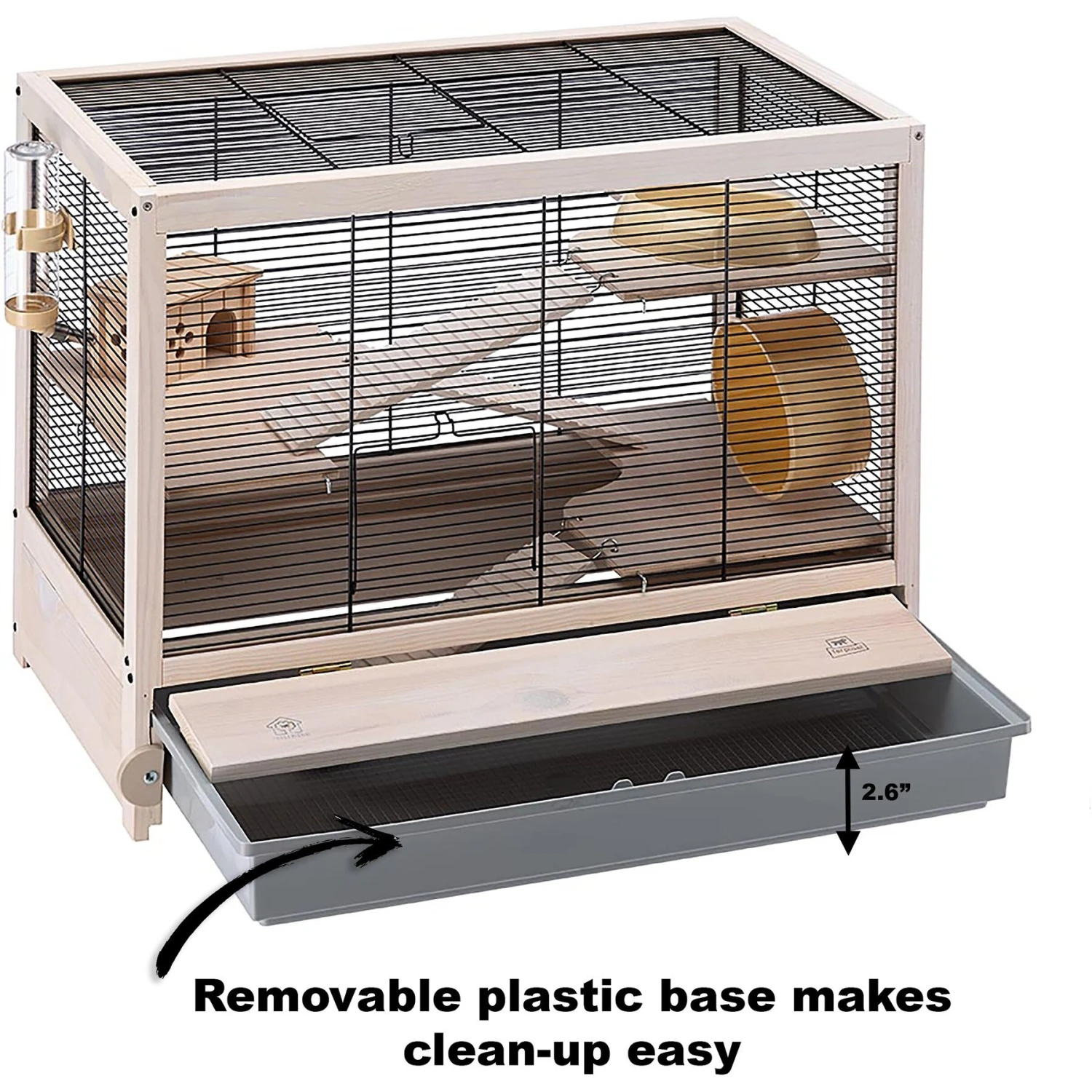 - This multi-level platform cage is a unique house for your hamster, with 3 wooden platforms for climbing and exploring.