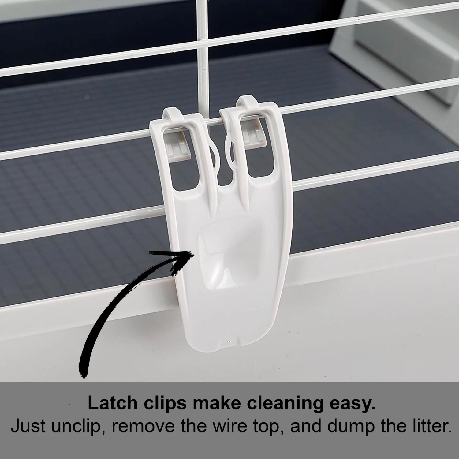 - A plastic base helps keep litter contained, and detaches for easy cleaning.