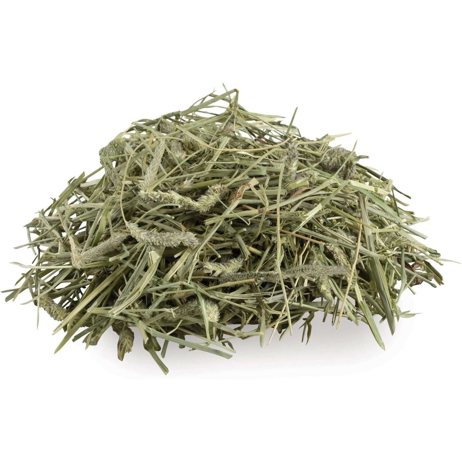 - First cut timothy hay with long fibrous stems and fewer leaves.