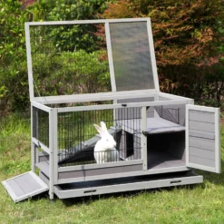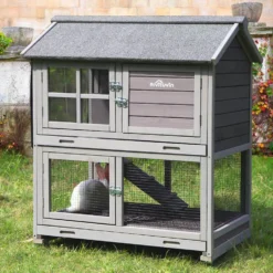 Aivituvin AIR06-A Small Pet Indoor/Outdoor Hutch, Gray, Two Story