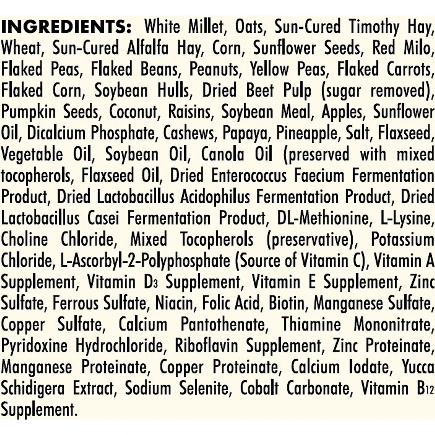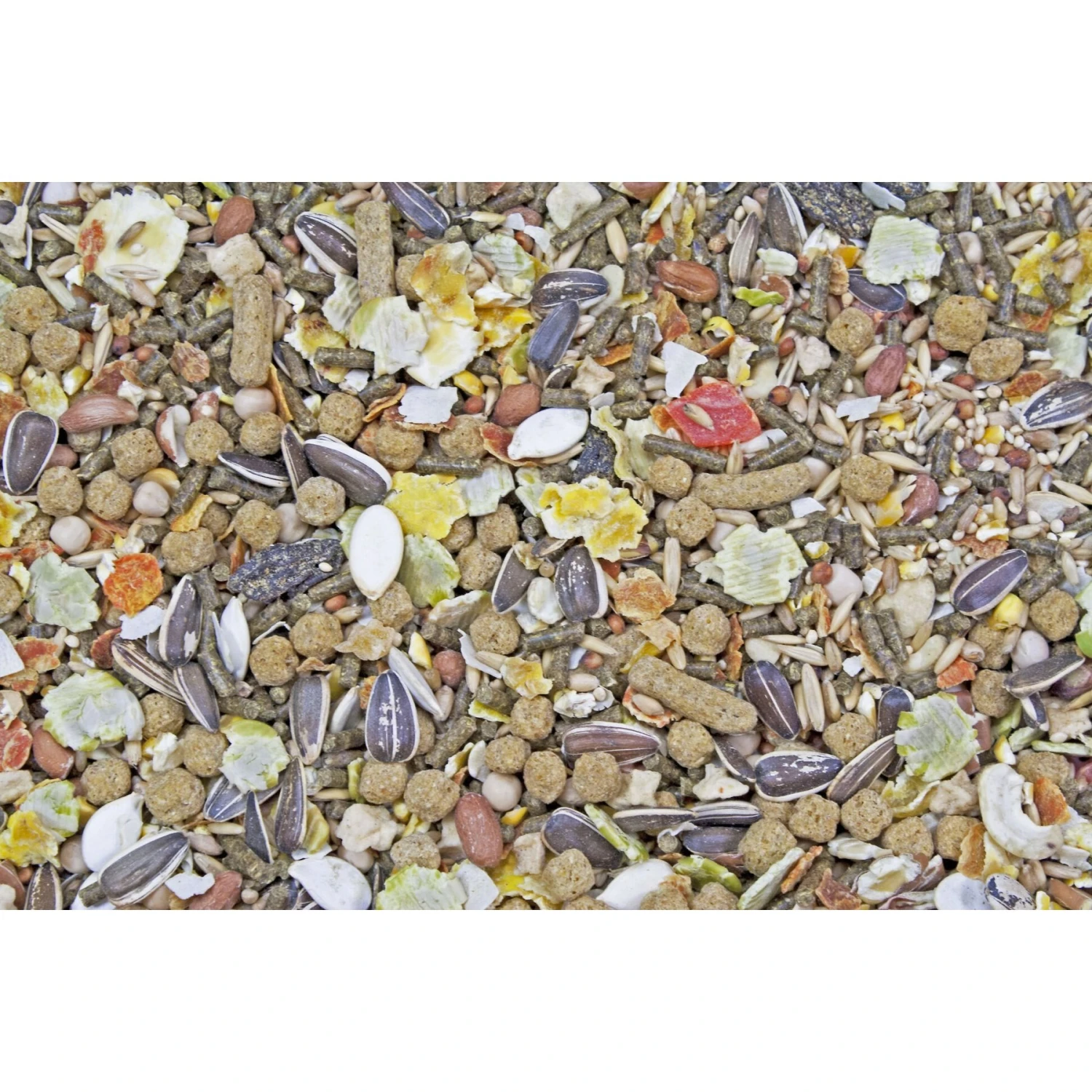 - A healthy, all-natural blend of species-appropriate dried mixed fruits, seeds, grains, nuts and pre-cooked legumes.