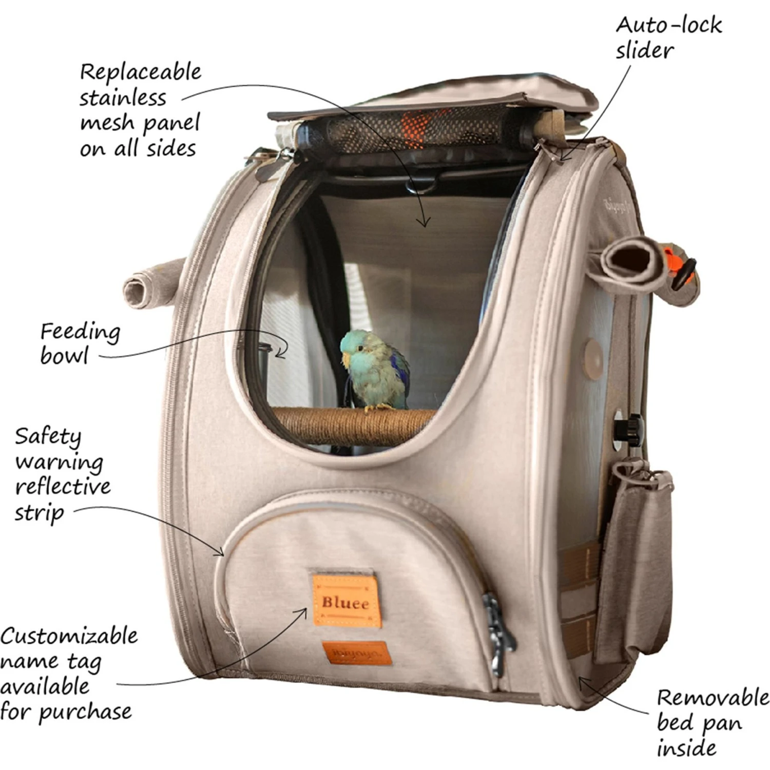 - Movable hole-sealing Velcro patches help to cover unused holes and protect your bird’s beak.
