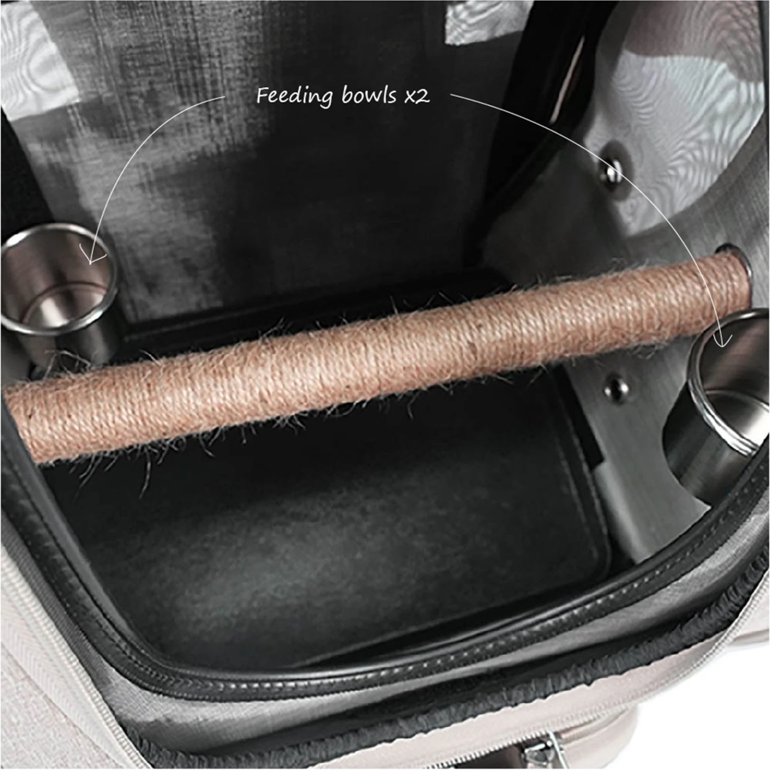 - Includes a removable wooden perch, hemp rope, plastic pan and stainless steel bowls.