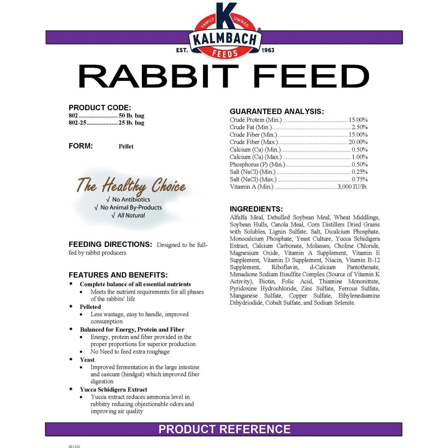 - All-natural complete feed formulated for all classes of rabbits.