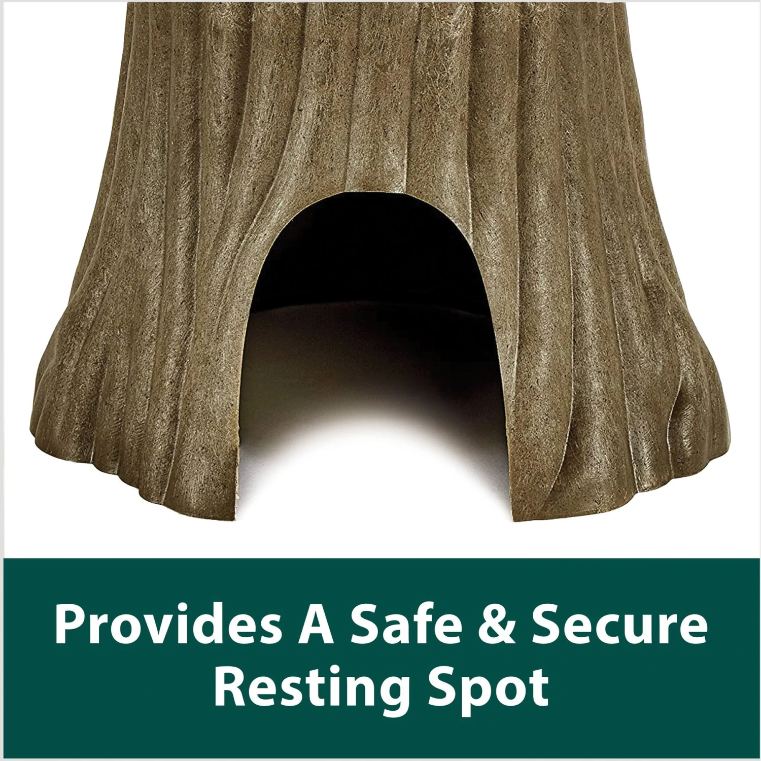 - Adorable tree trunk design satisfies the small animal’s natural instinct to hide