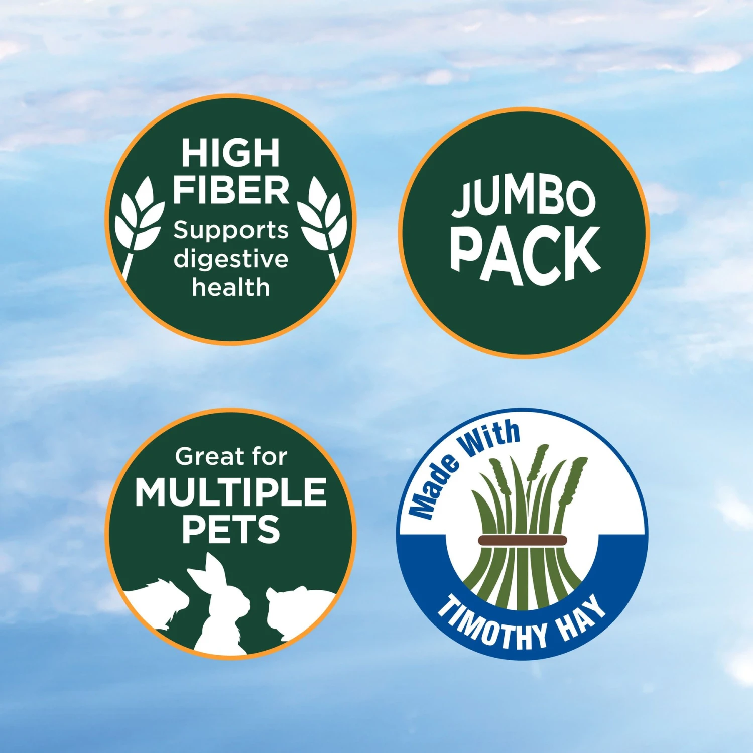 - Carrot-flavored timothy grass treats support your pet’s dental health through natural chewing activity.