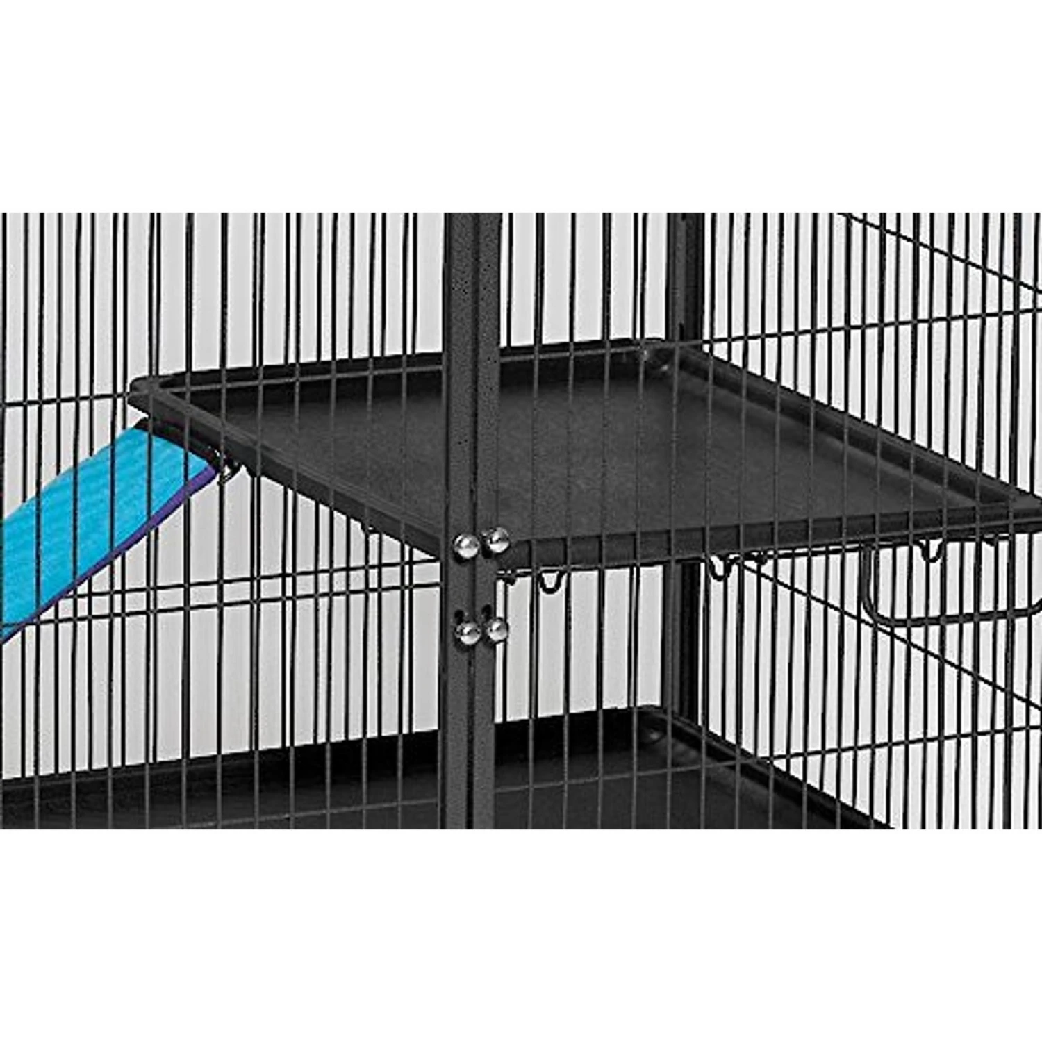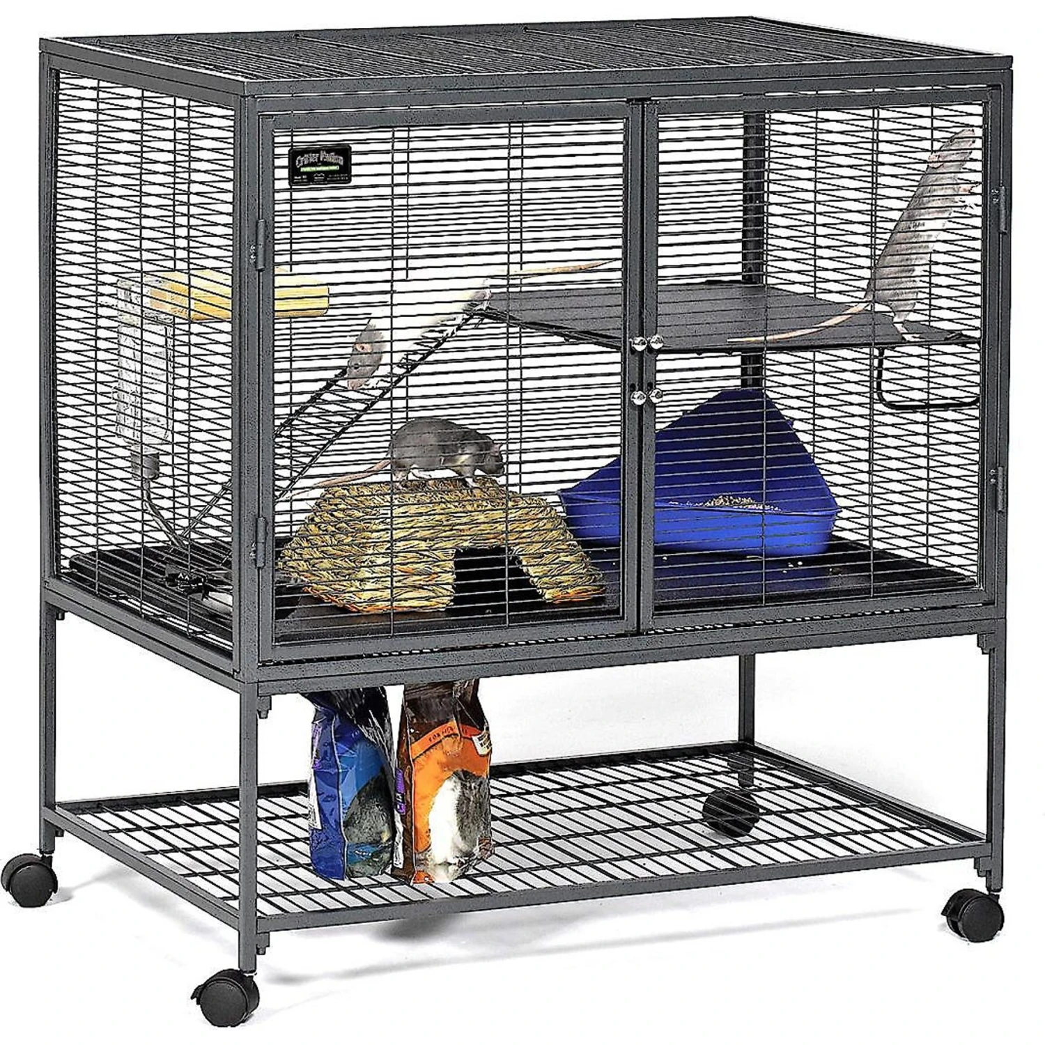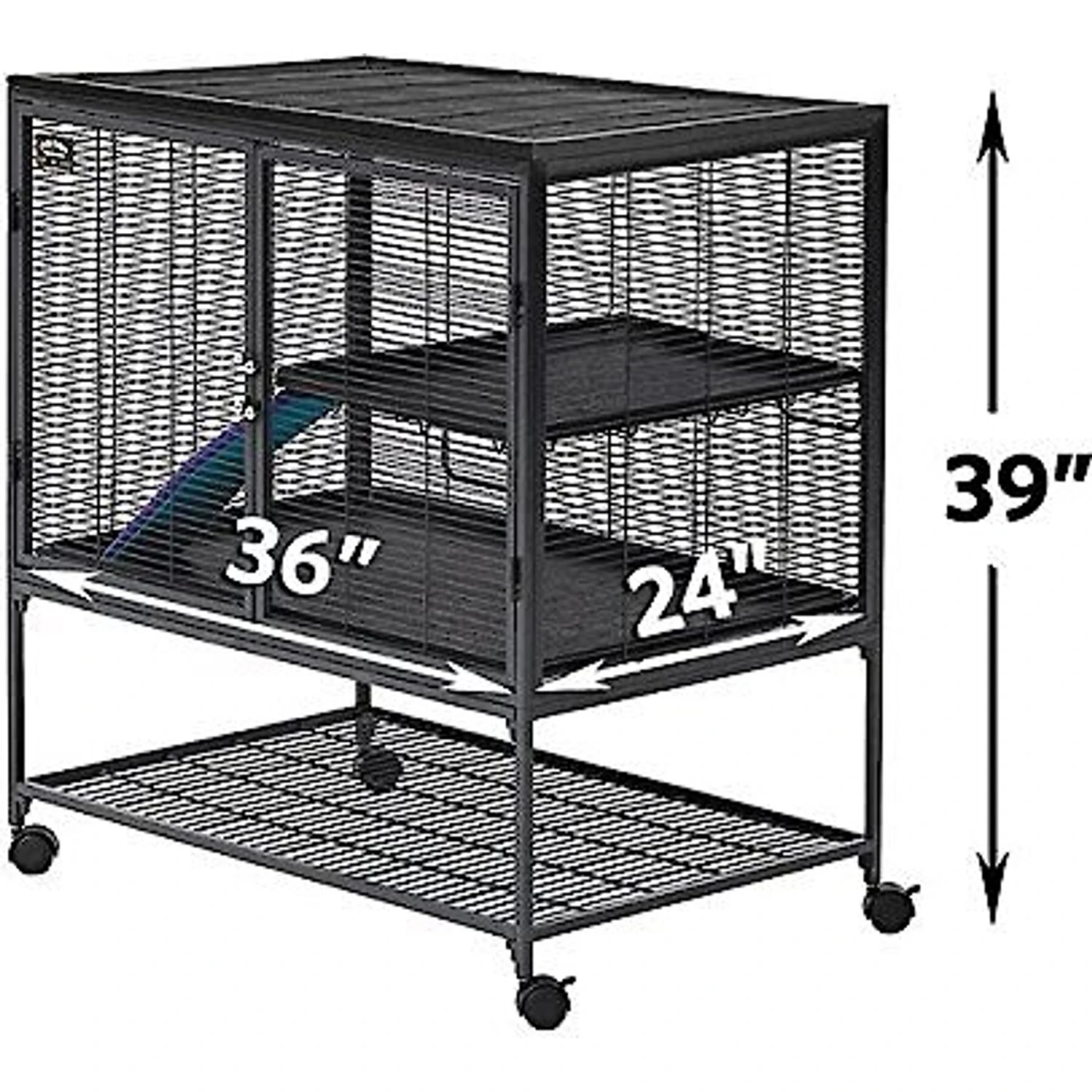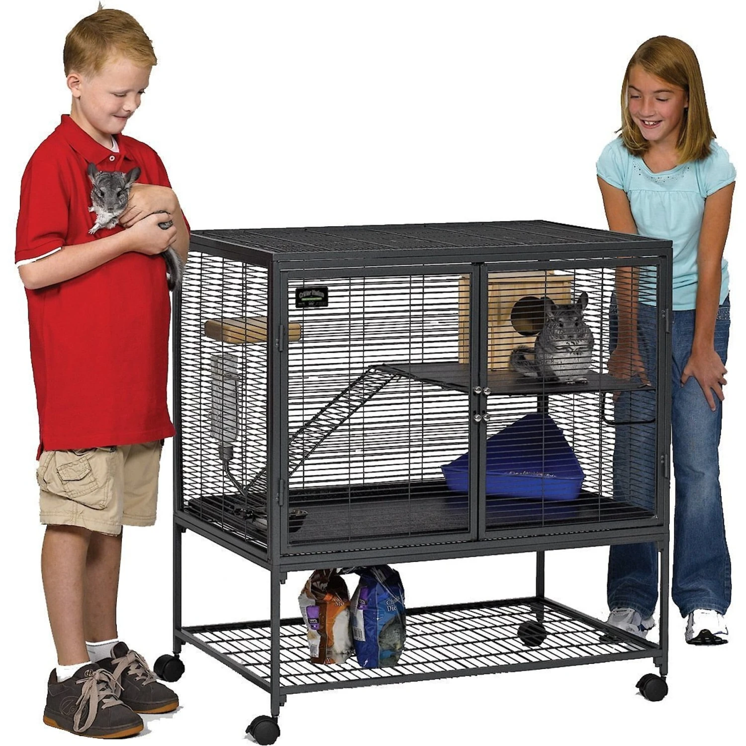 - Spacious living area is ideally suited for rats, chinchillas, Guinea pigs, ferrets, sugar gliders and more; durable leak-proof pans help prevent food, water, pet waste or other debris from reaching the floor.