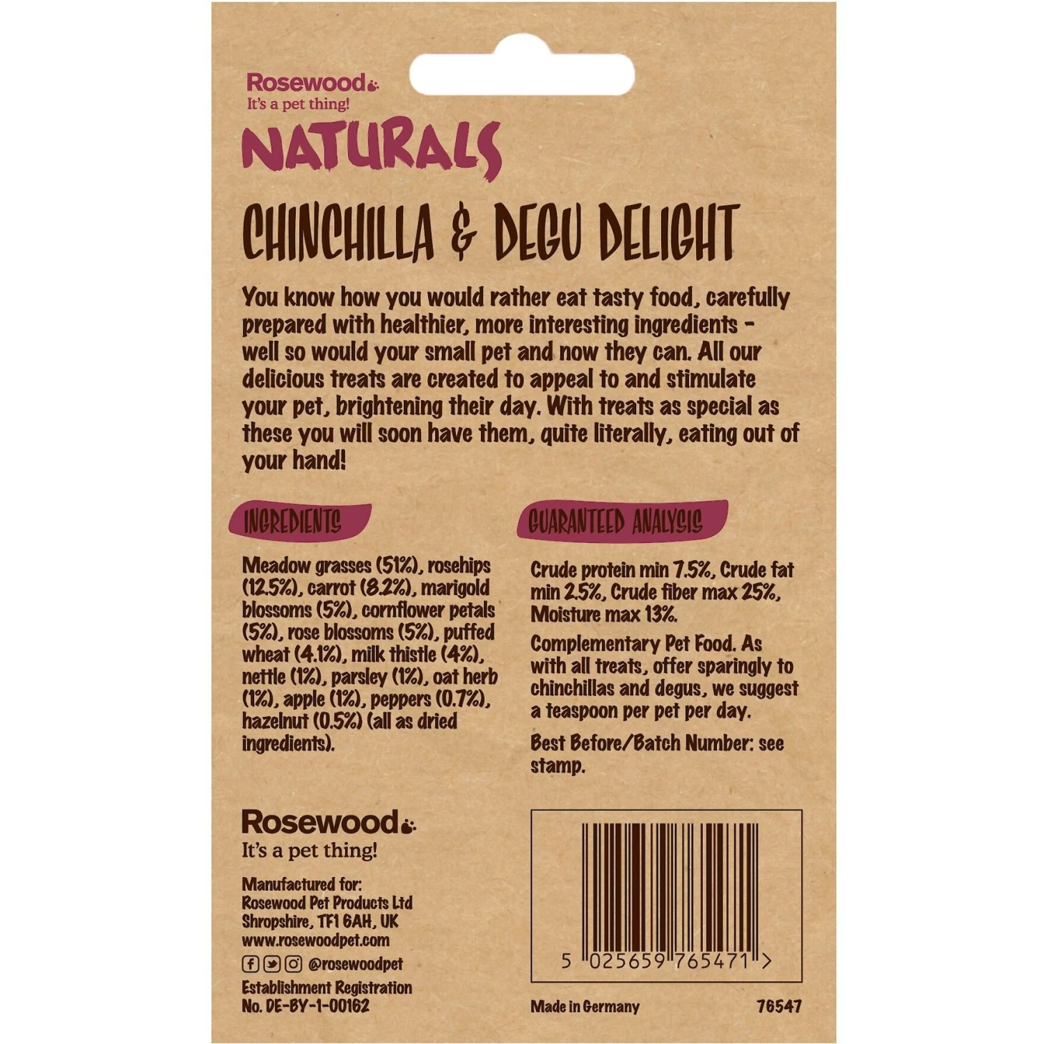 Naturals By Rosewood Chinchilla & Degu Delight Small Pet Treats