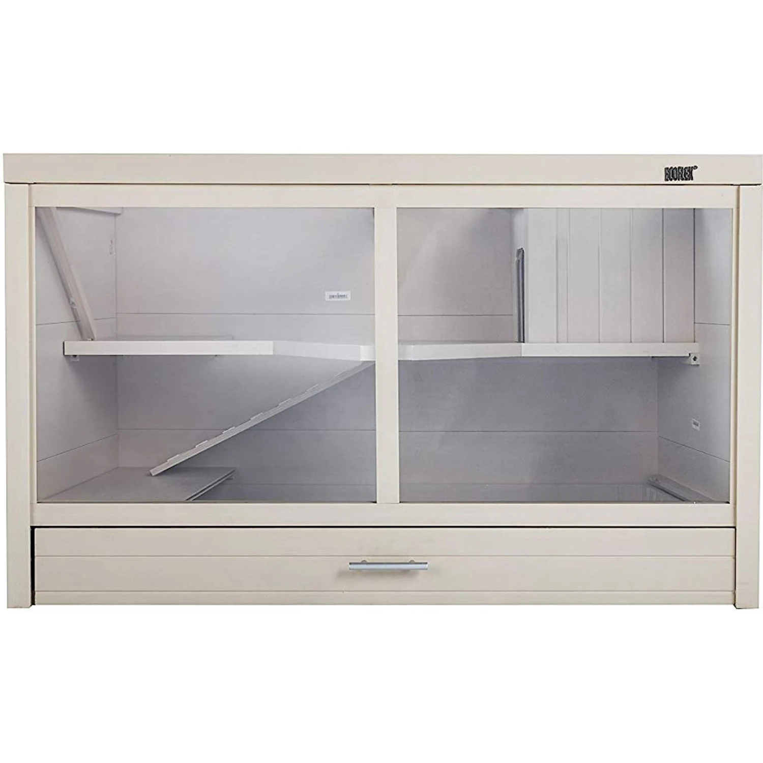 - The scratch-resistant polycarbonate front panel offers a full view of your pet’s living space.
