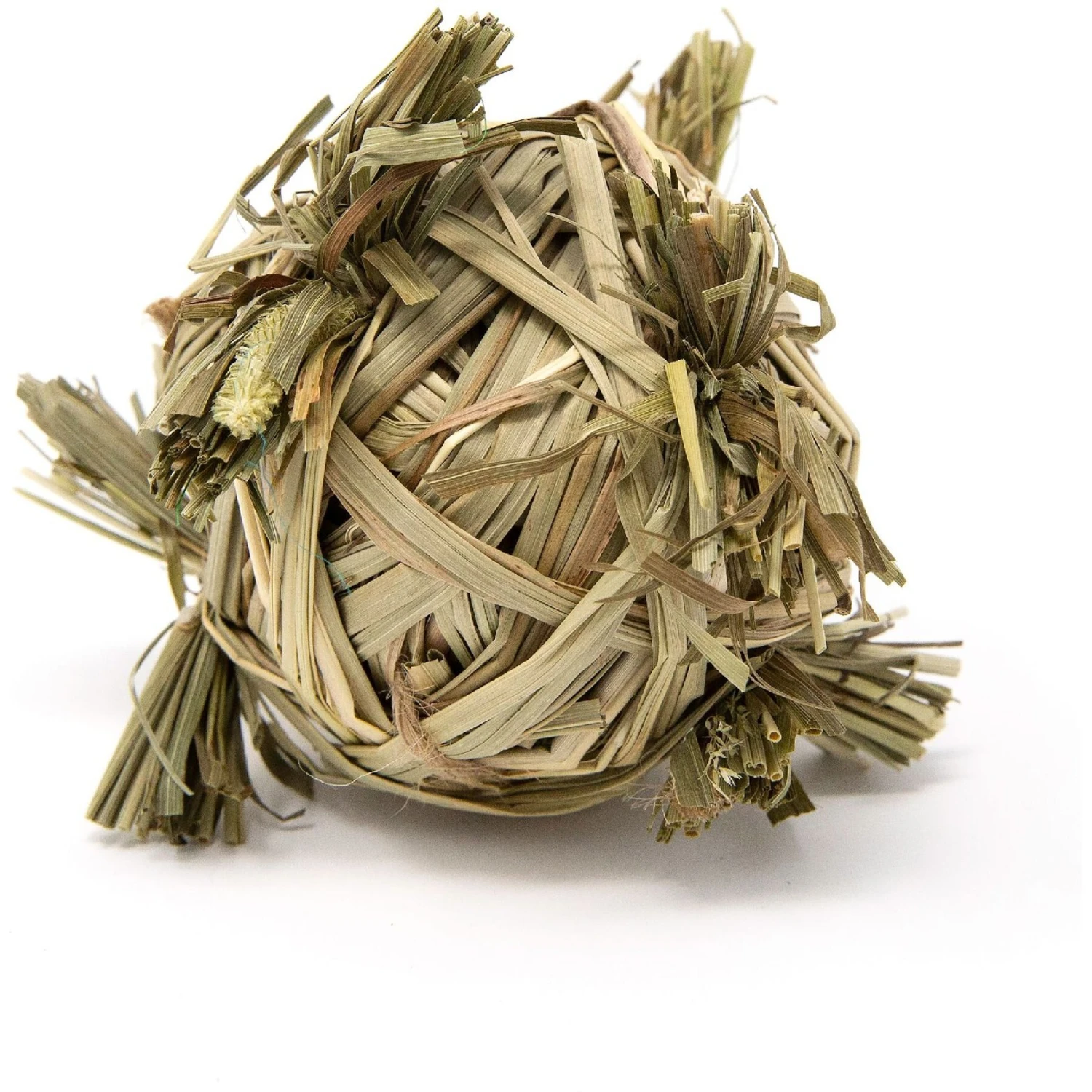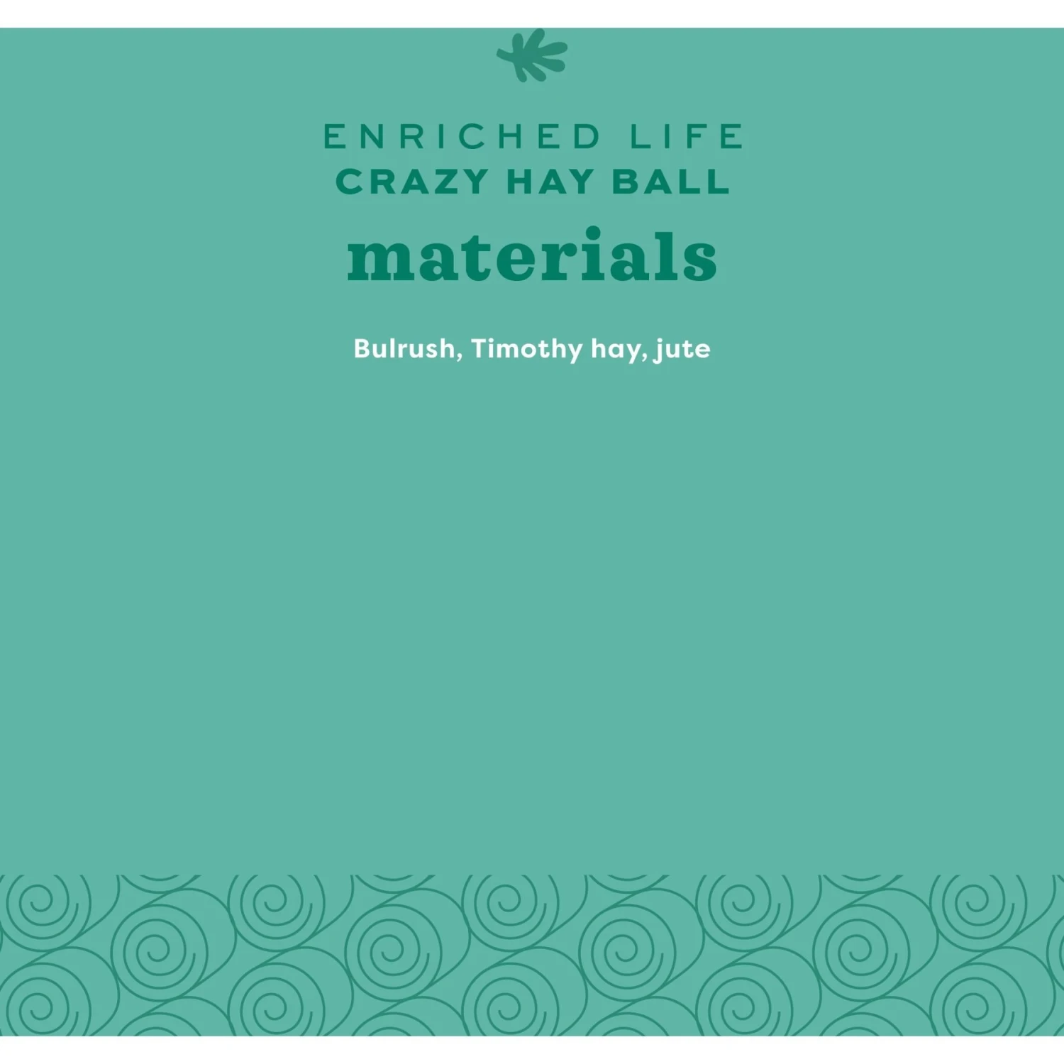 - The chewable Crazy Hay Ball is tied in a fun-to-munch shape.