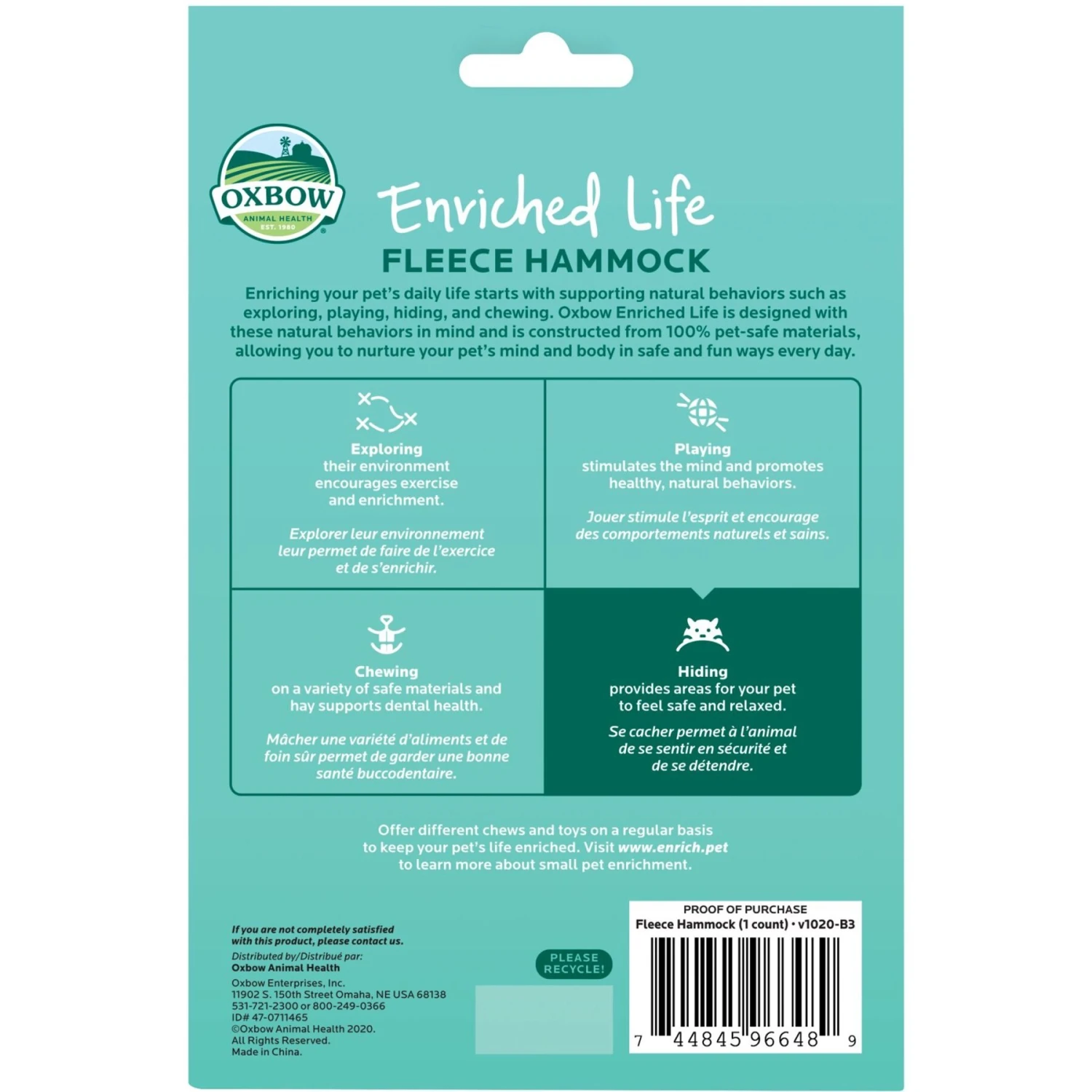 Oxbow Enriched Life Fleece Small Animal Hammock
