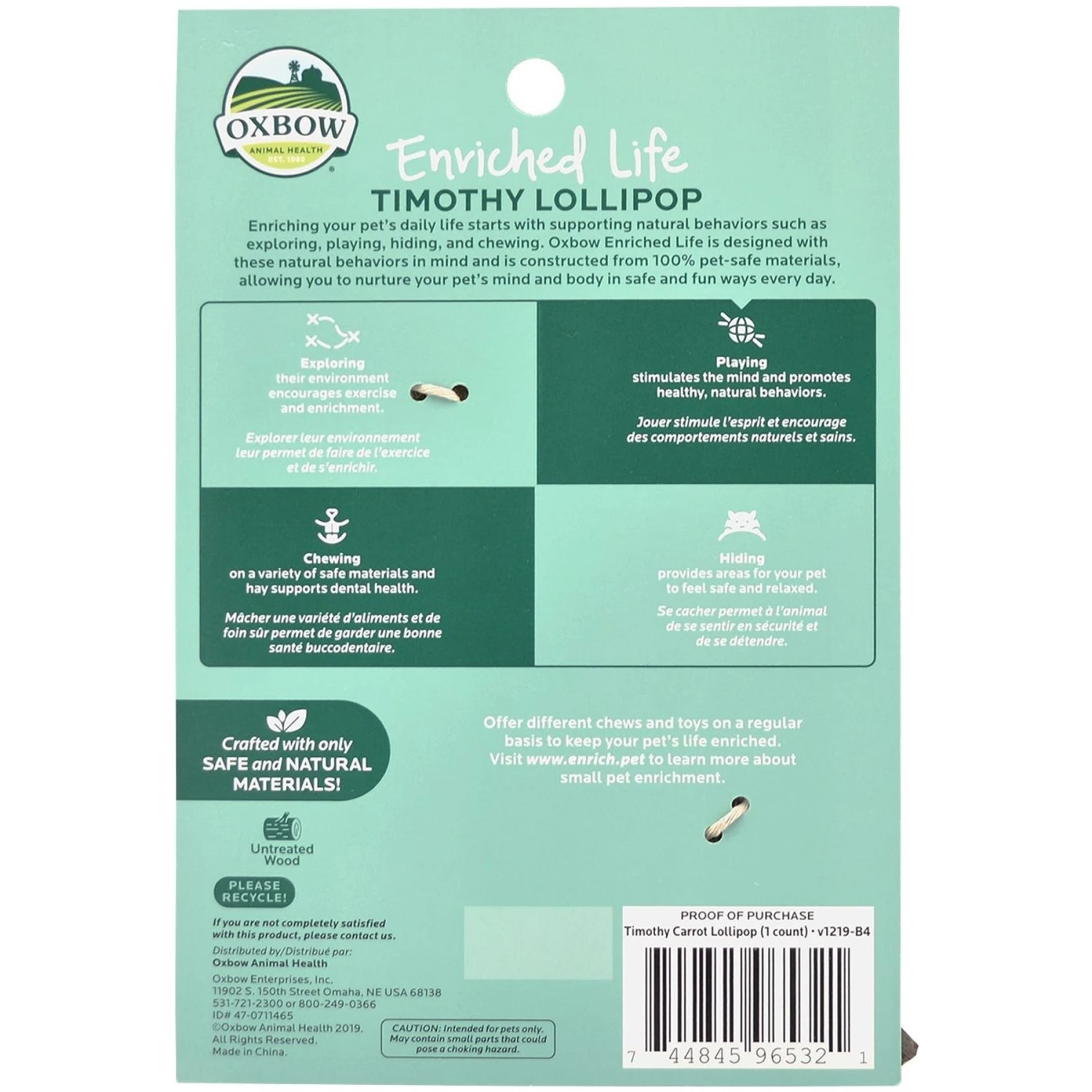 Oxbow Enriched Life Timothy Carrot Lollipop Small Pet Chew Toy