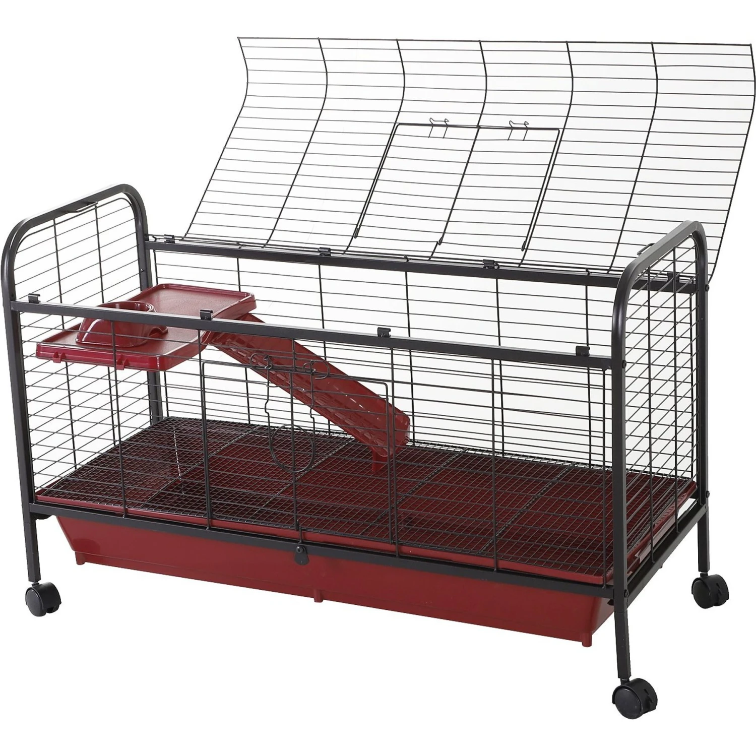 - Features an elevated feeding area, a ramp, and a spacious playing area.