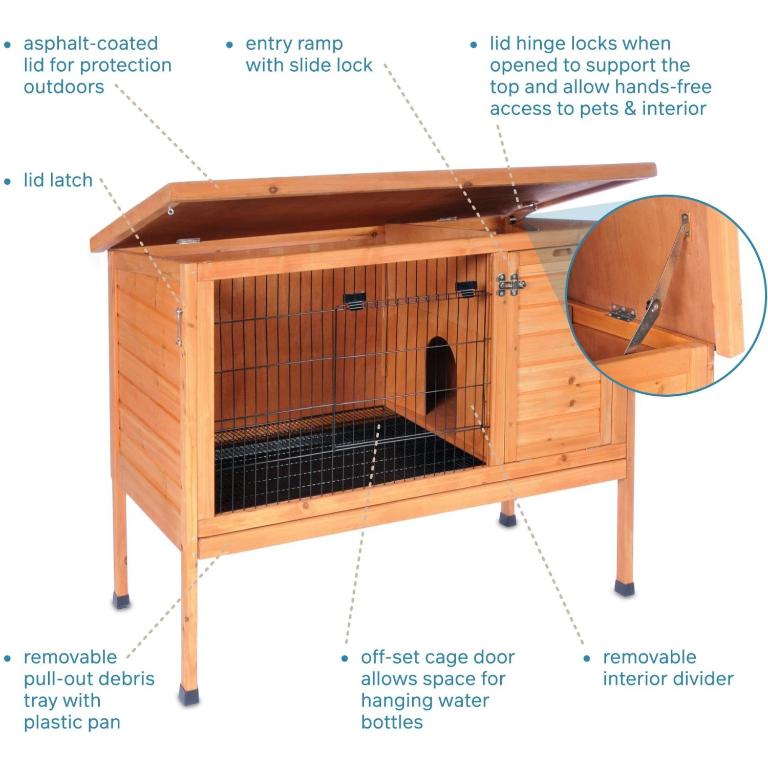 - Asphalt shingle top is water-resistant and protects your bunny from rain and other inclement weather.