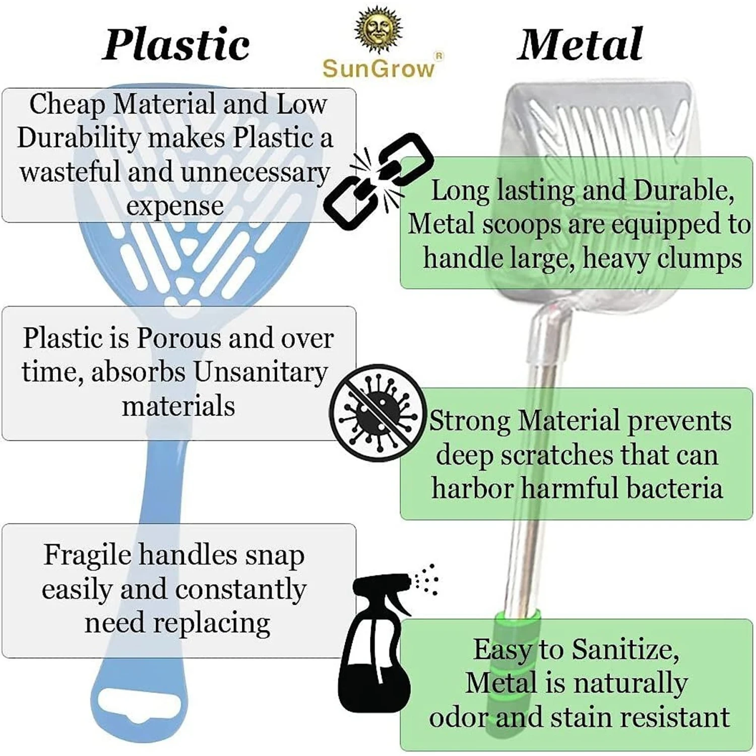 SunGrow Cat Long Handle Metal Scoop For Clumping Clay Litter & Dog Poop Picker Upper