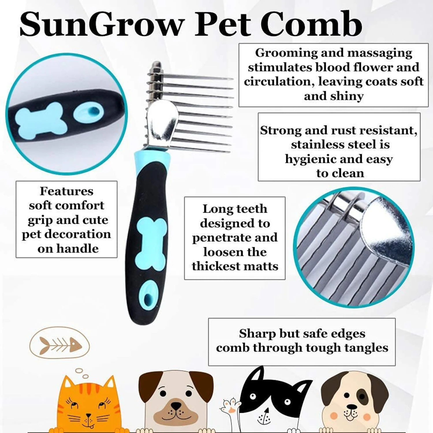 SunGrow Dog, Cat & Small Pet Grooming & Dematting Comb Undercoat Rake Brush