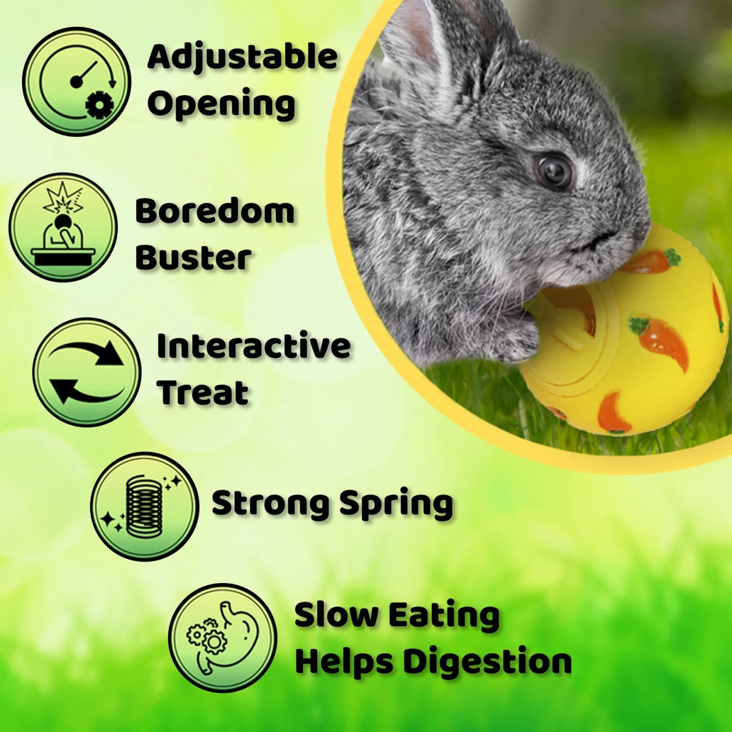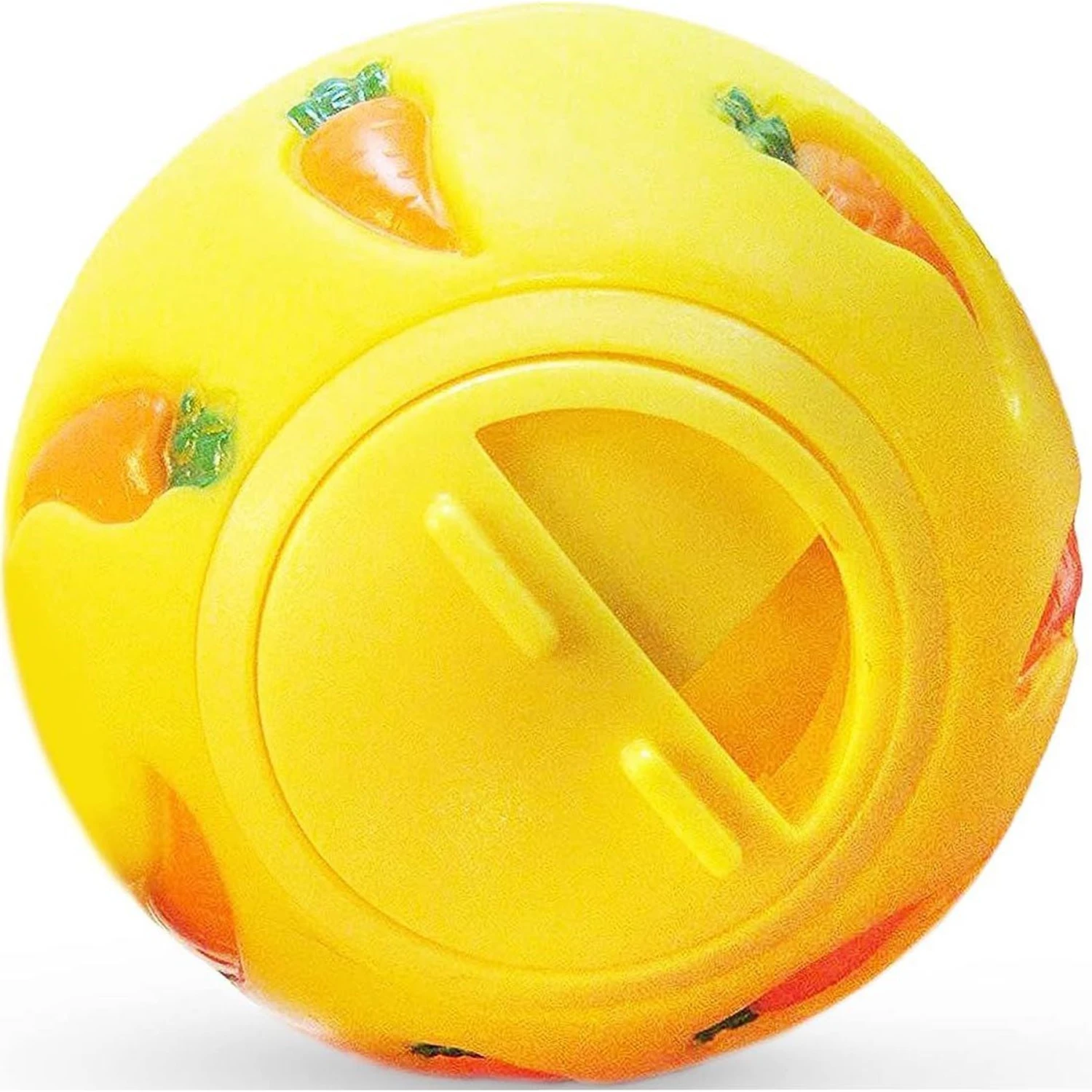 SunGrow Rabbit Encrichment Small Pet Carrot Treat Dispensing Ball Toy, Yellow, 3-in
