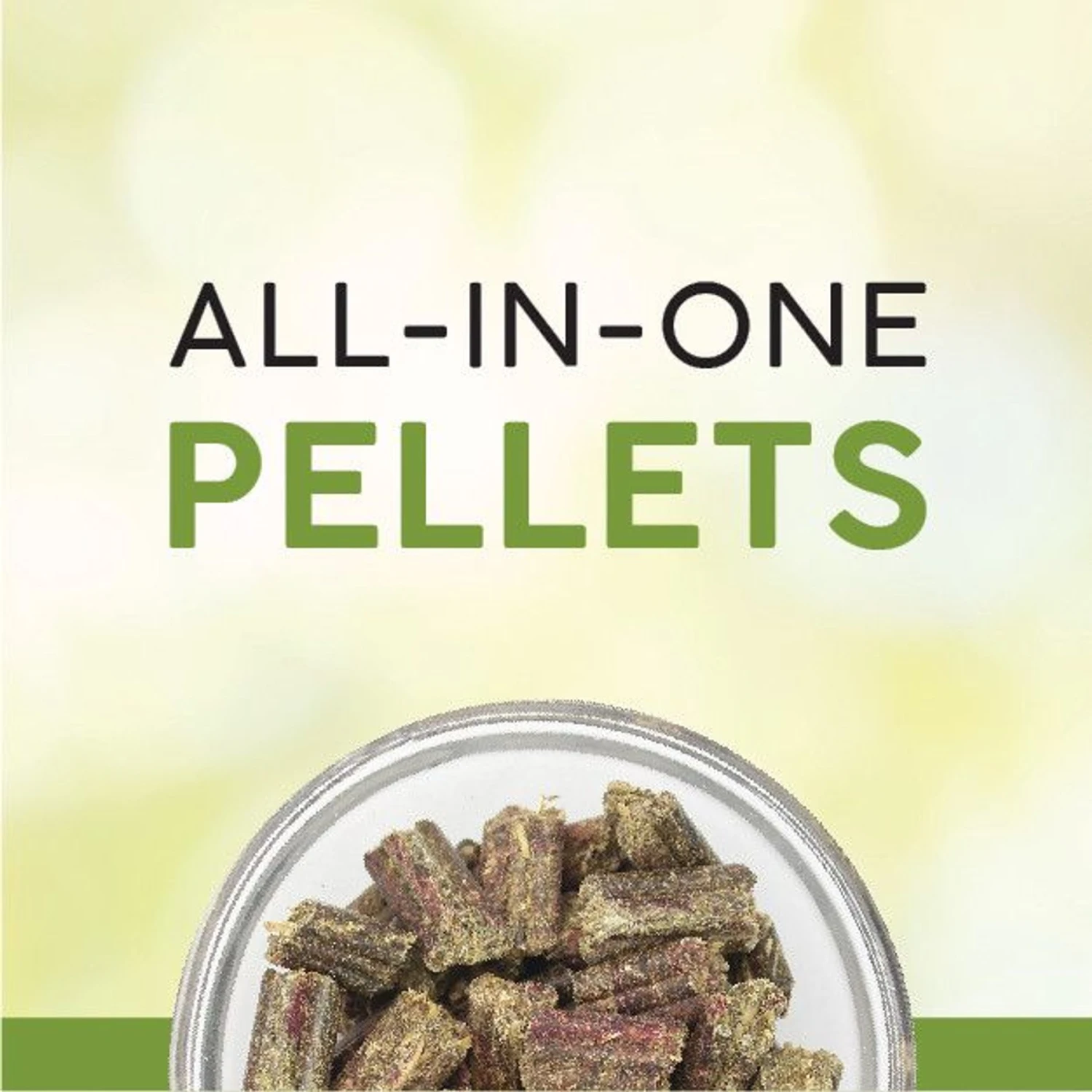 - All-in-one pellets deliver complete, uniform nutrition with timothy hay, oats, sunflower and more.