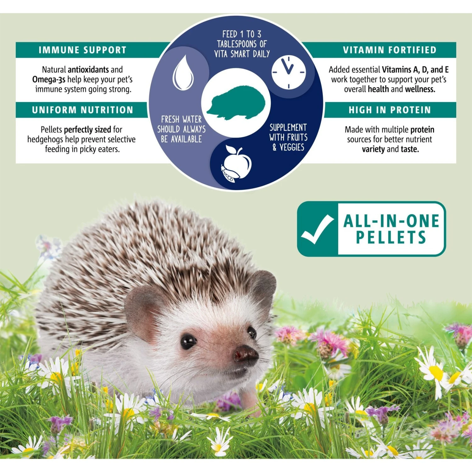 - With uniform food pellets that all look and feel the same, you don’t have to worry about your hedgehog’s selective taste preventing them from getting the nutrition they need.