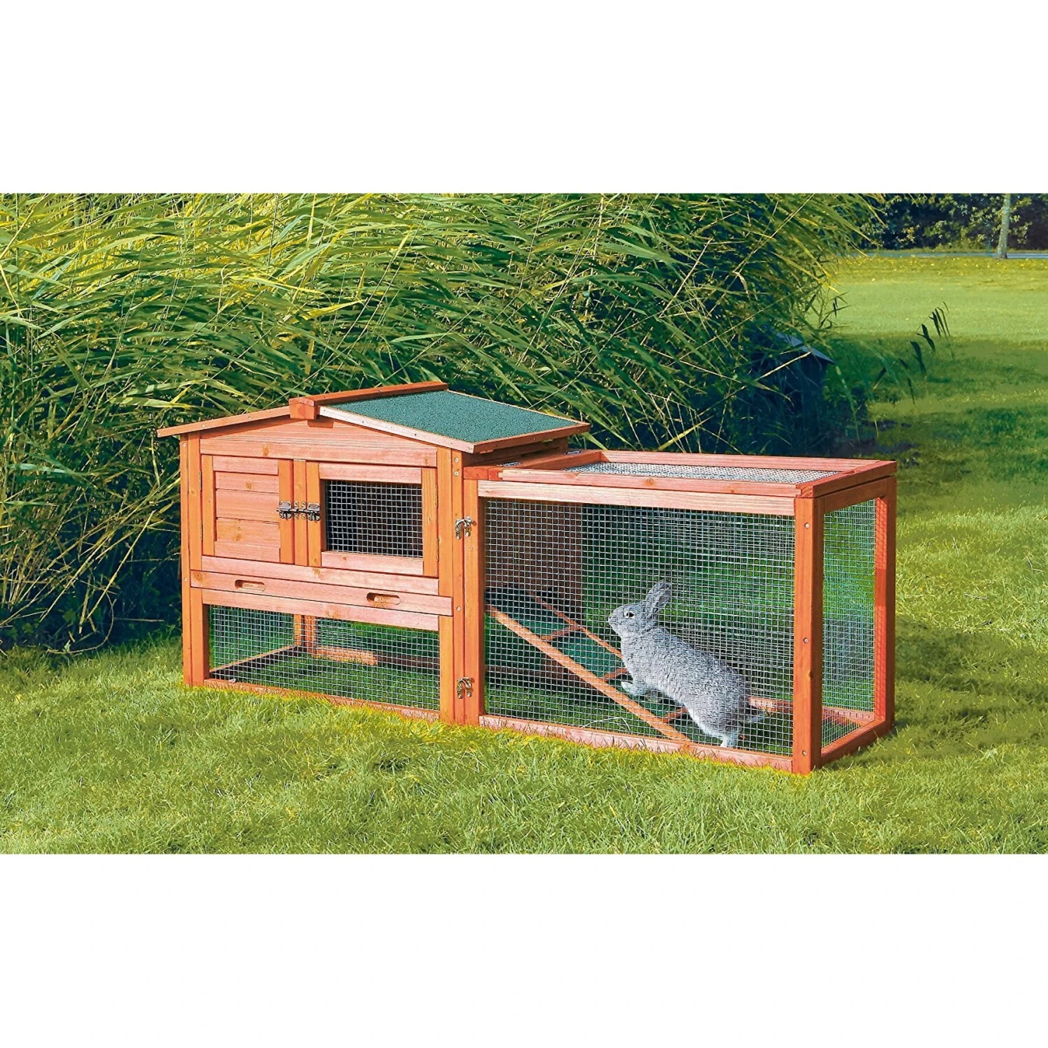 - Solid wood hutch and easily detachable run offers years of use with little maintenance.