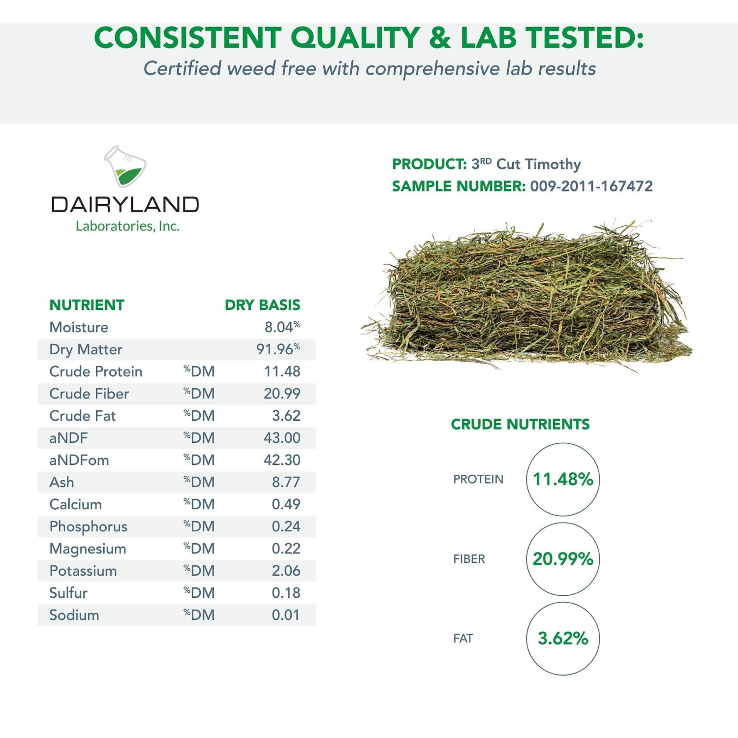 - This hay has multiple weed-free certifications and comprehensive lab results to ensure your pet is getting the high-quality hay she deserves.