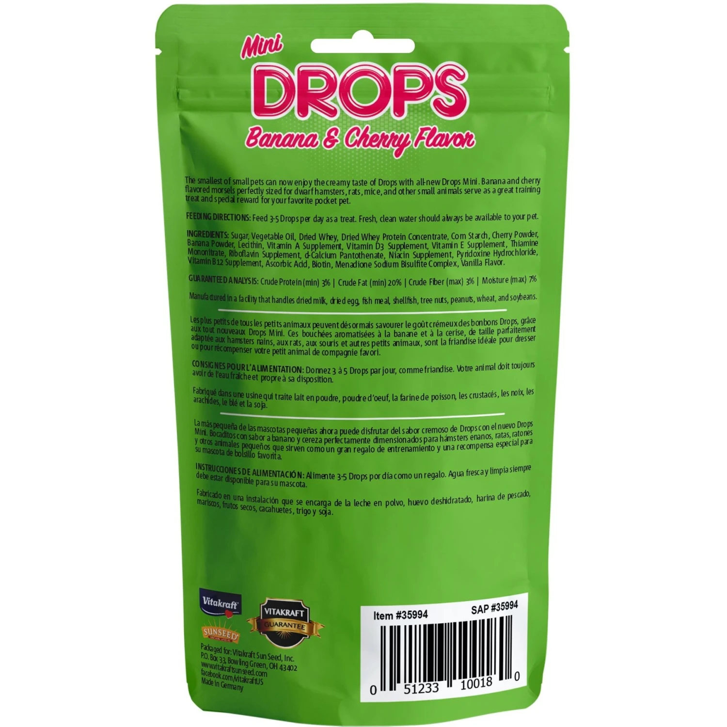 Vitakraft Drops Mini Banana & Cherry Flavor Small Animal Treats, 2.5-oz Bag
