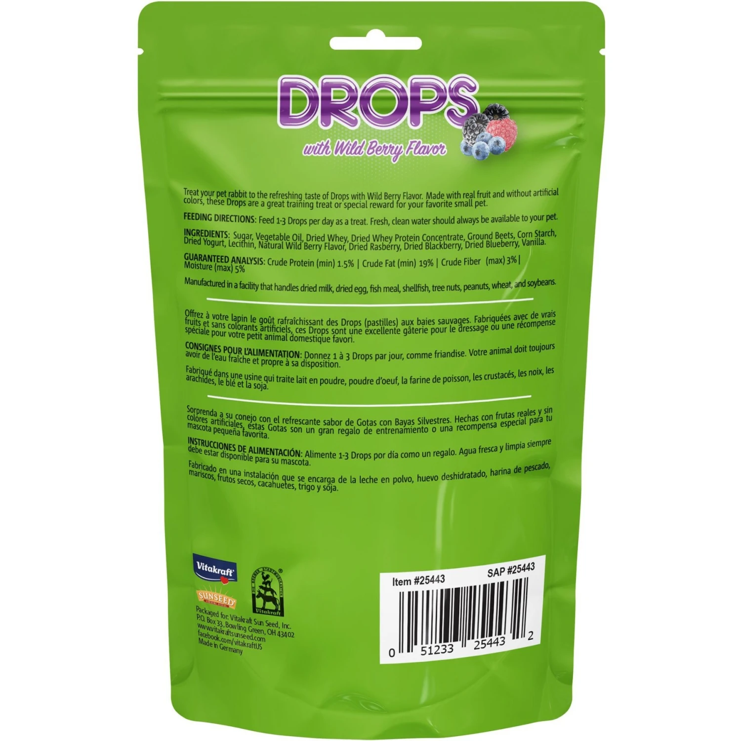 Vitakraft Drops Wild Berry Yogurt Rabbit Treats, 5.3-oz Bag