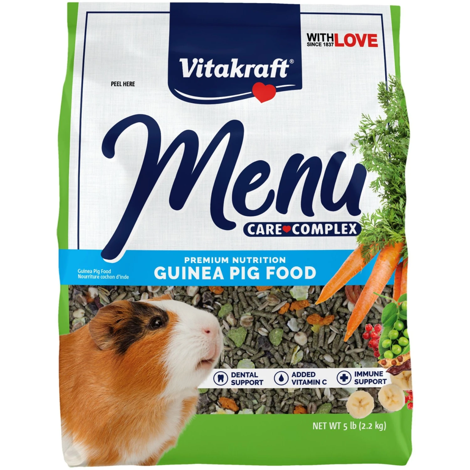 - A blend of vegetables, grains, fruits and concentrated guinea pig food pellets offer variety in every bite.