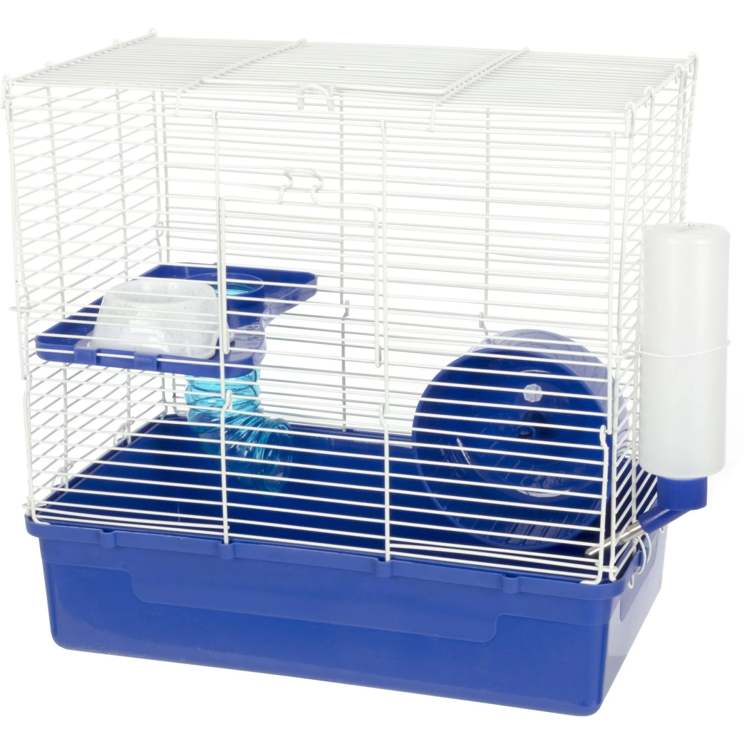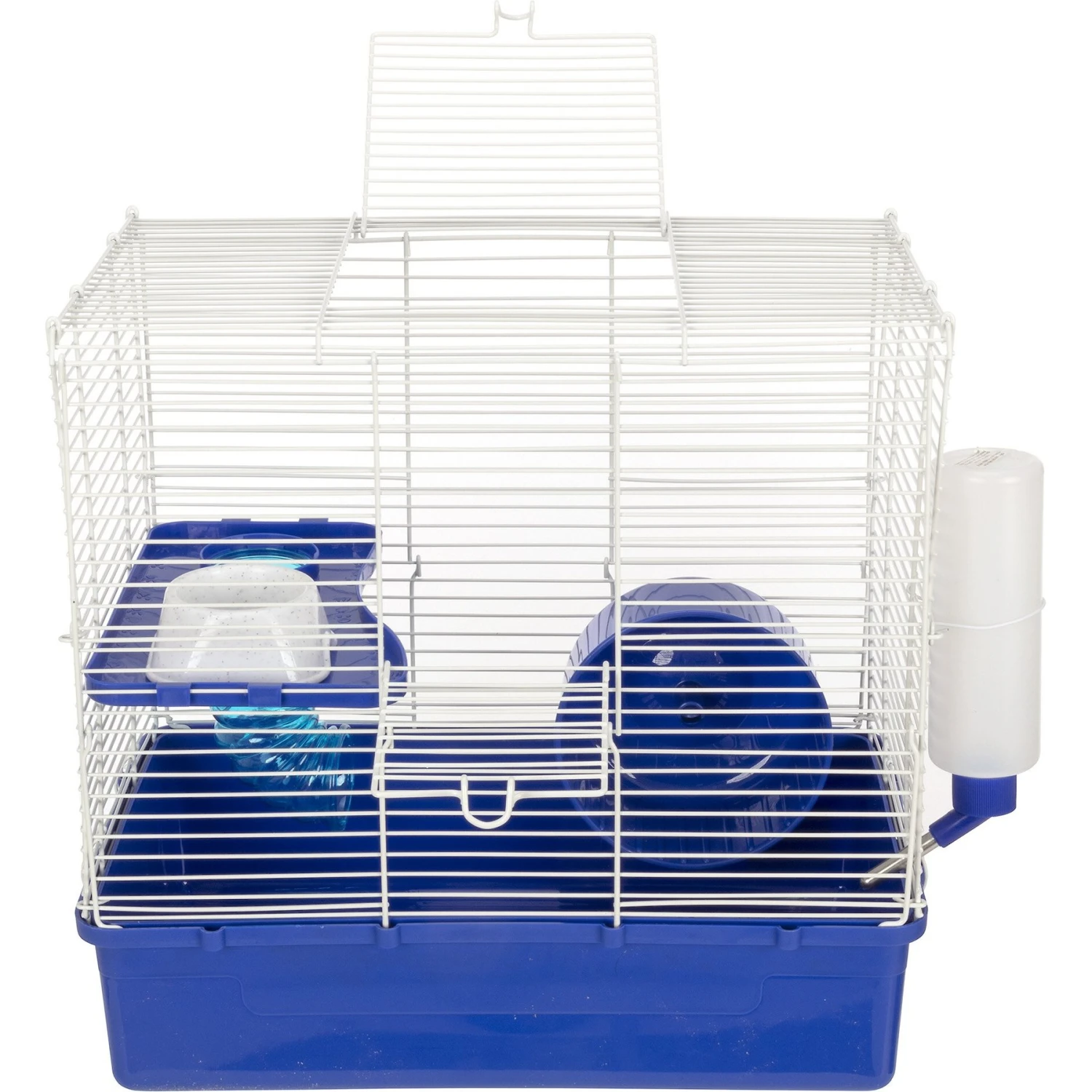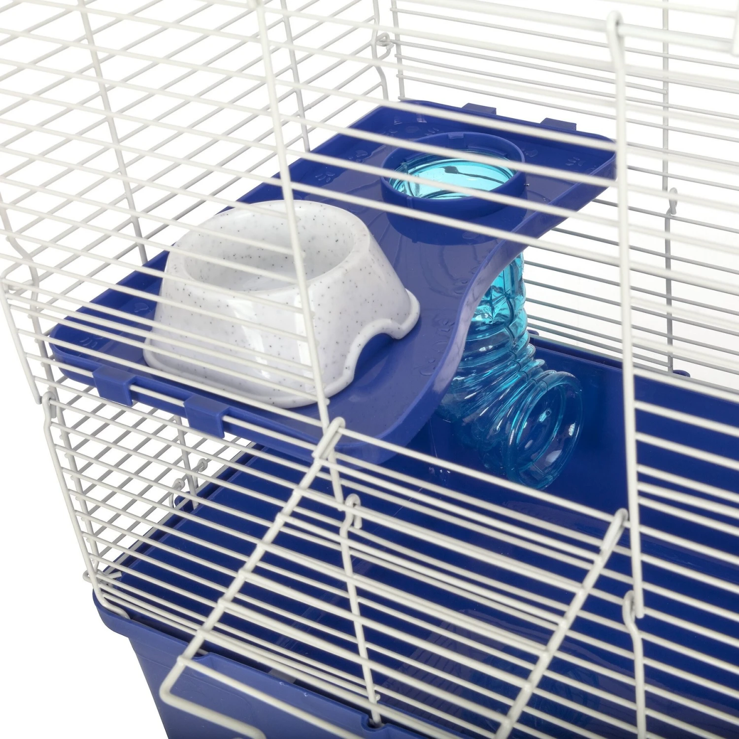 - The cage features a deep plastic base and an easy snap-on top.