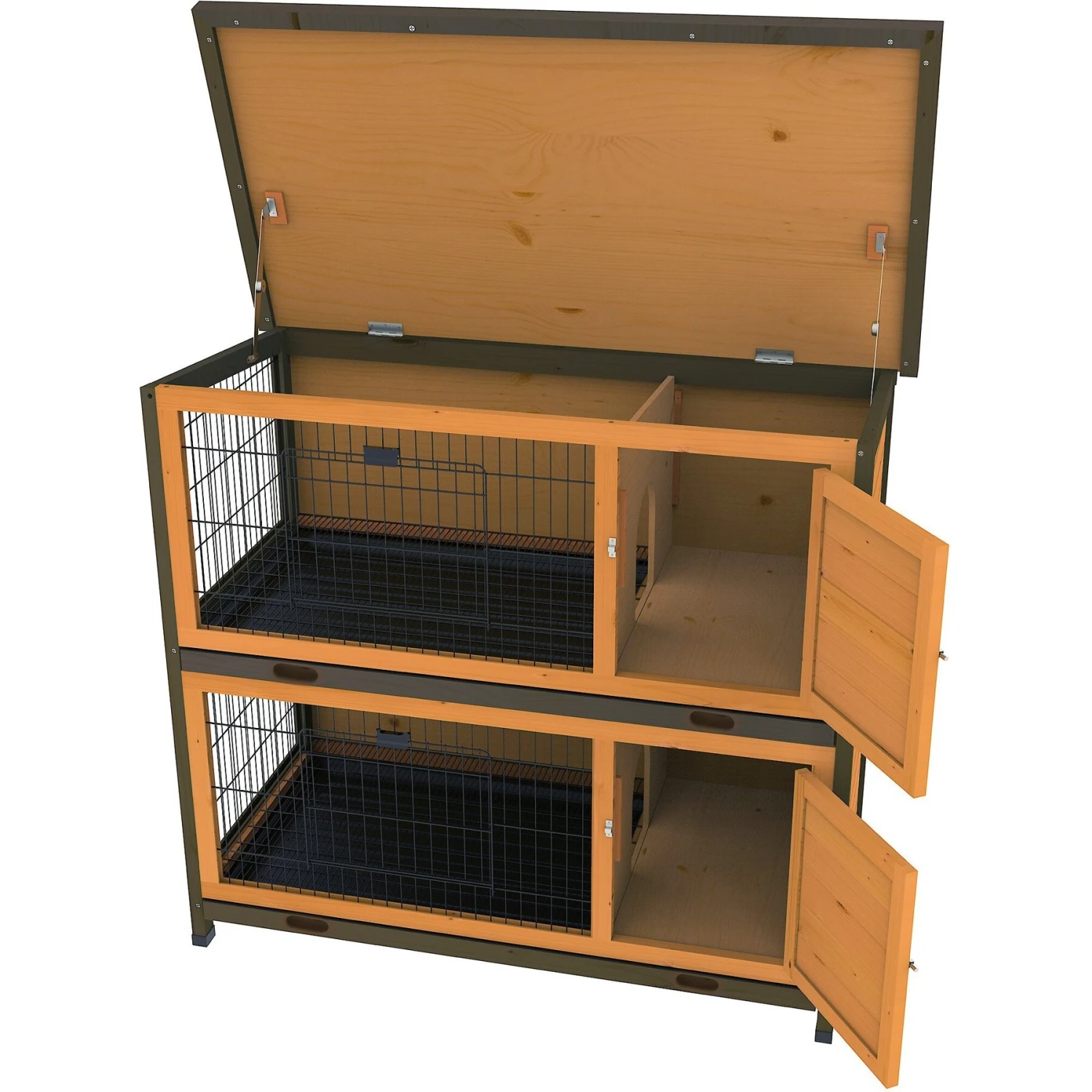 - Double hutch designed to home multiple fuzzy friends indoors or outside.