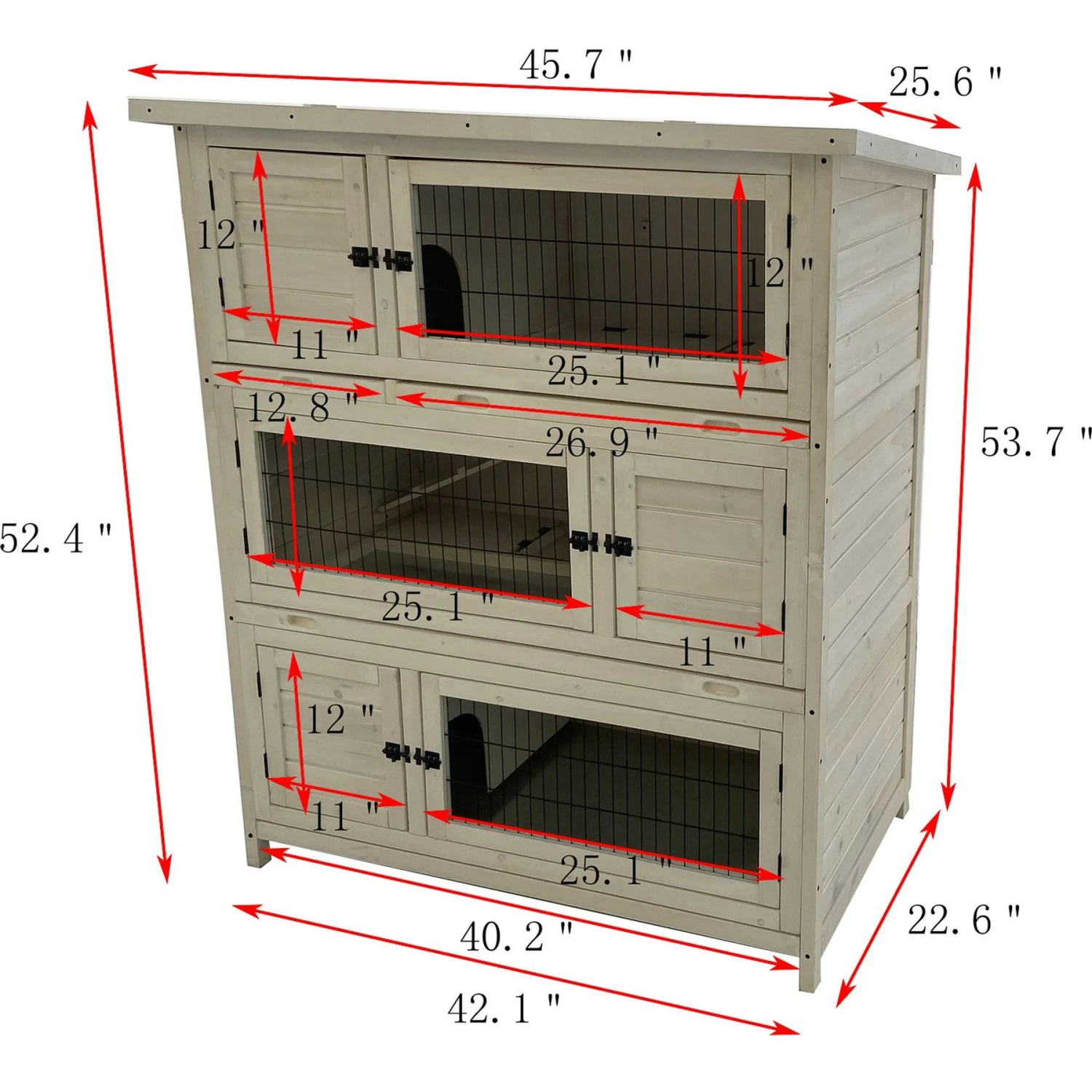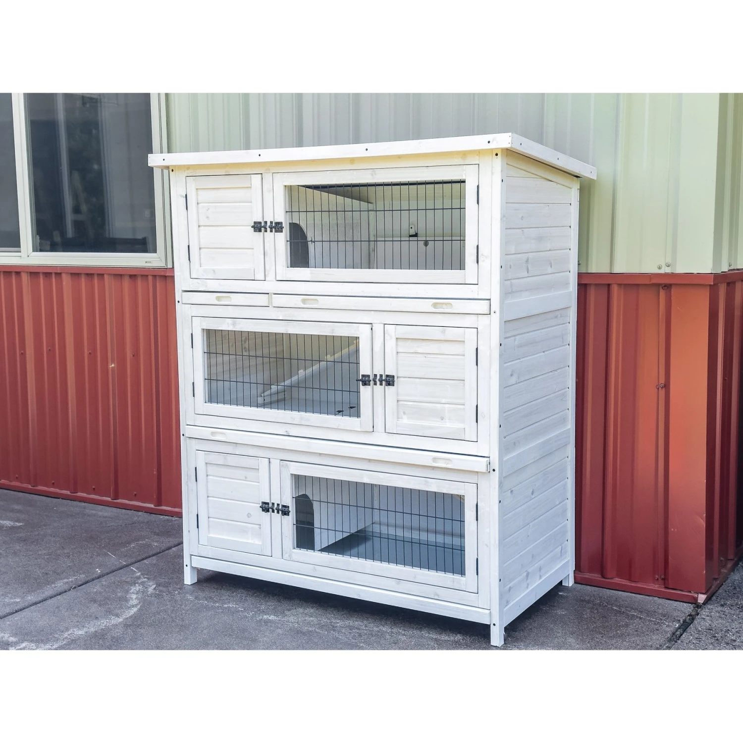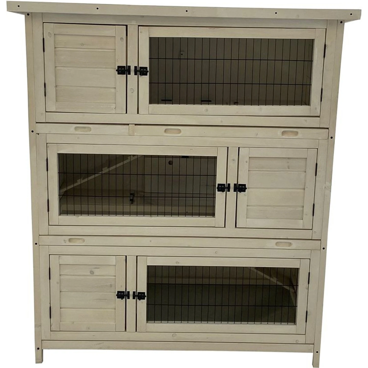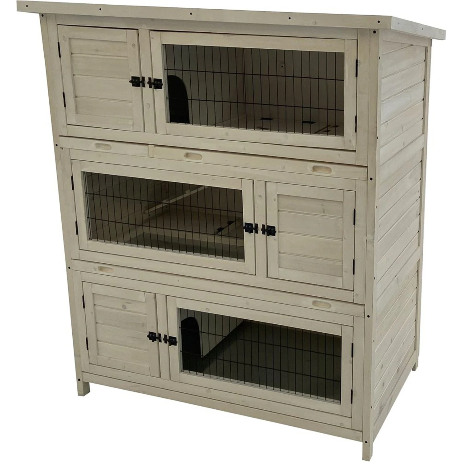- Can be used as three individual habitats or one deluxe three-level hutch!