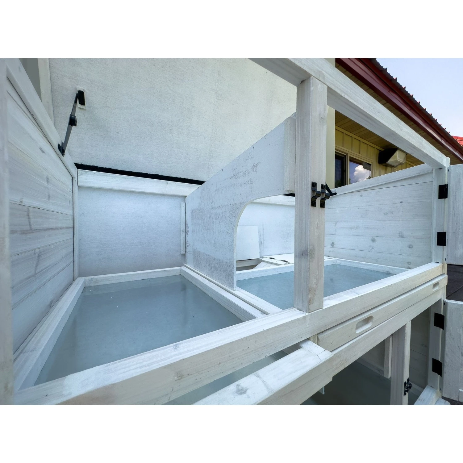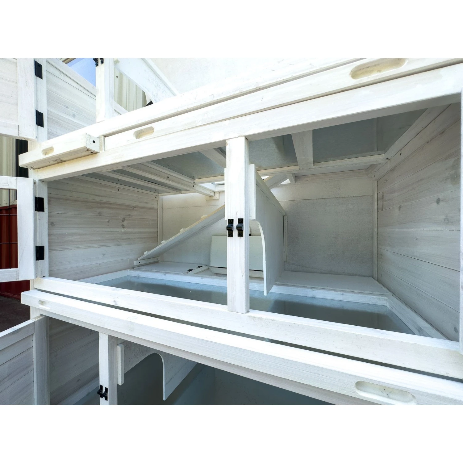 - Double access doors on each level offer full access for cleaning, feeding and pets.